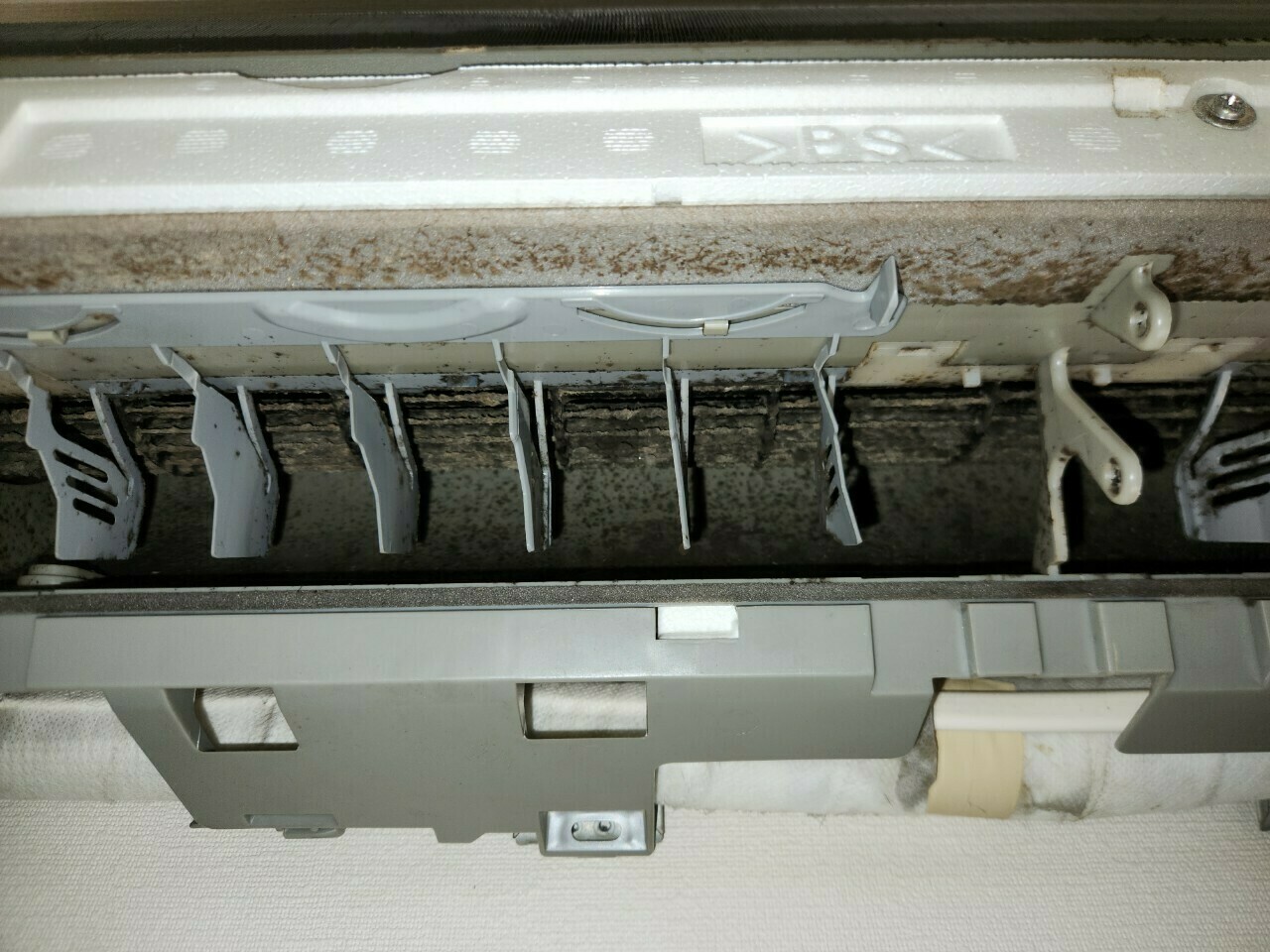 エアコンのルーバーも取り外すと黒カビいっぱいですね😭