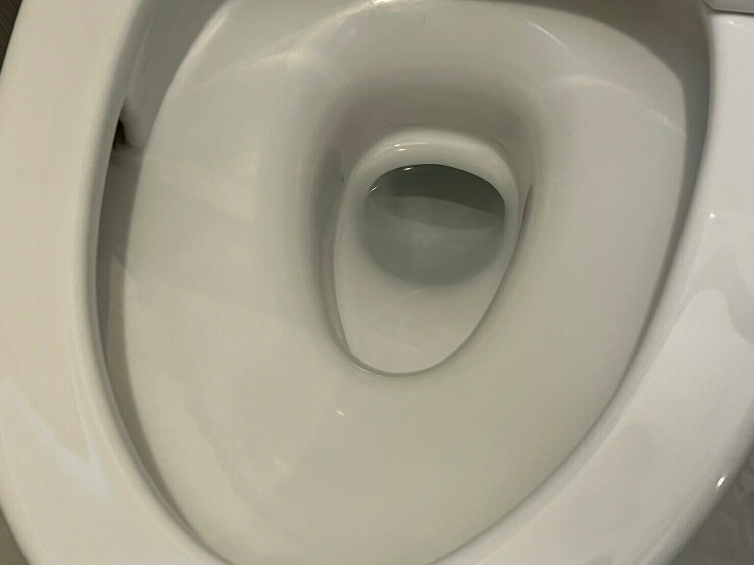 一見綺麗に見える便器ですが、尿石汚れがついて黄ばんでいますね💦
