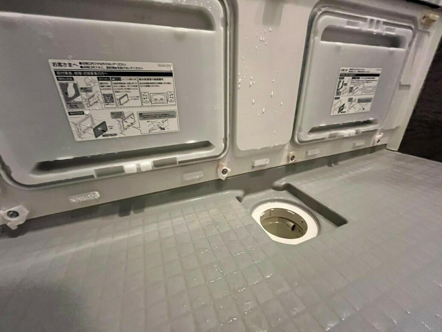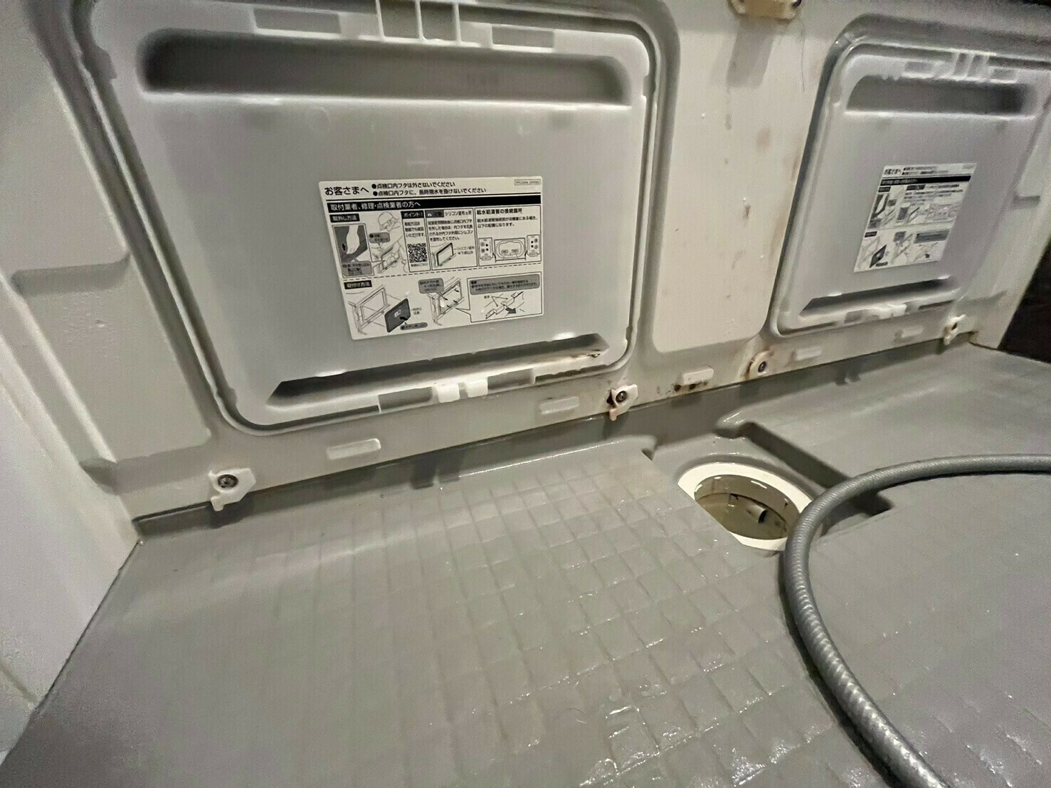 エプロンを外すと黒カビや石鹼カス汚れによるぬめりがありました💦