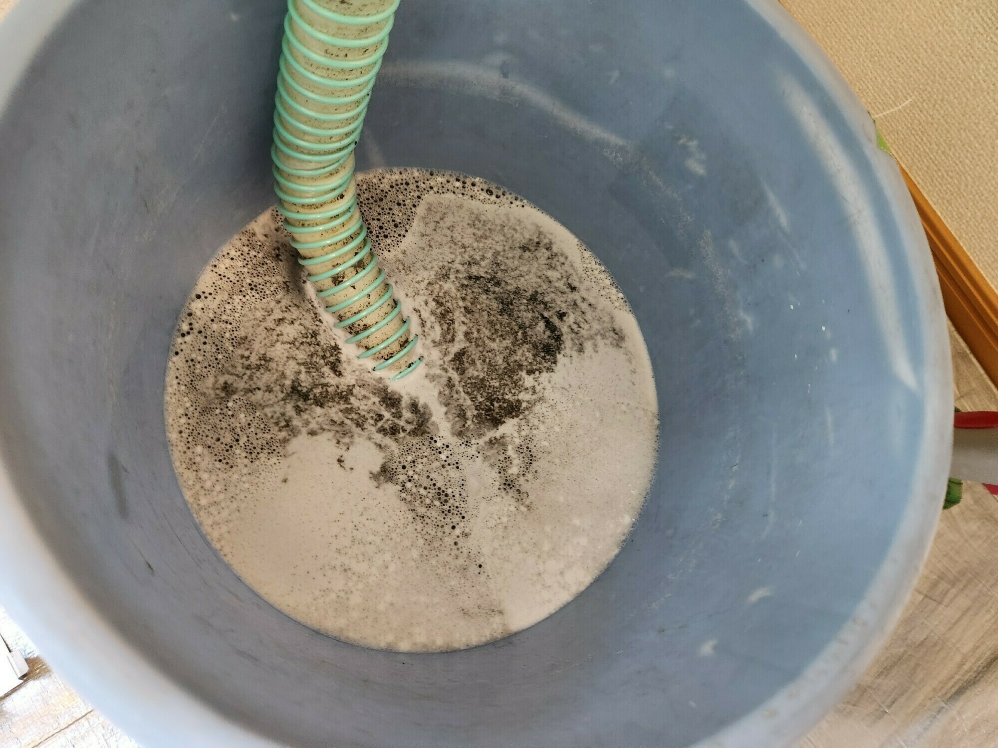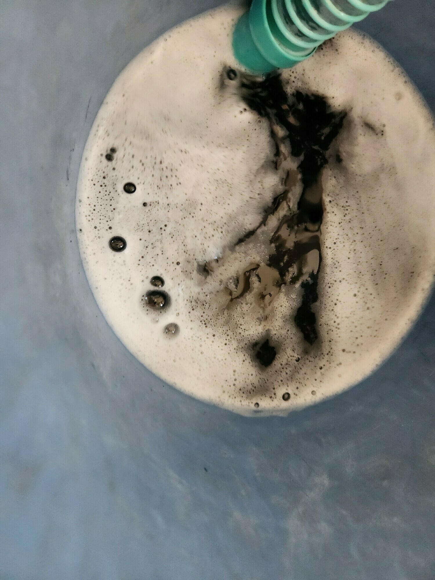 泡が多く、見にくいですが、こちらの汚水も真っ黒でした💦