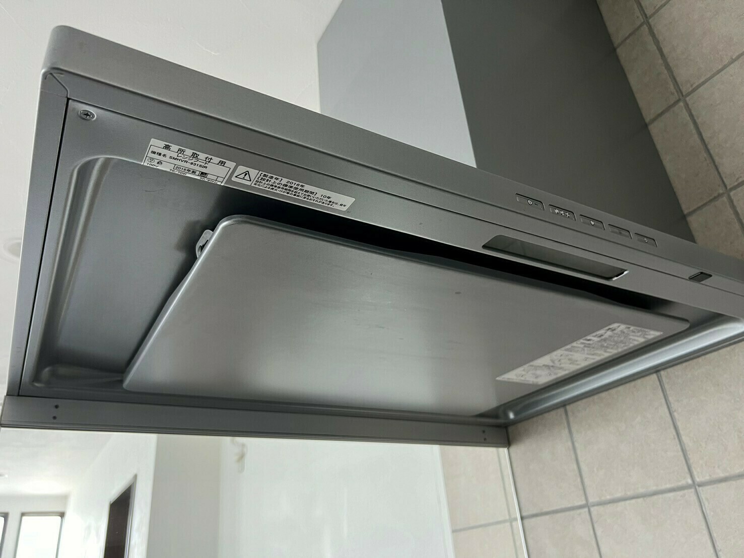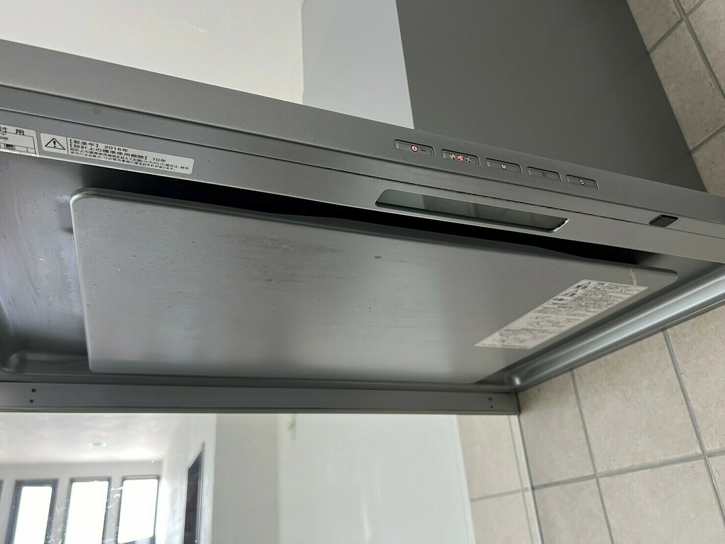 レンジフードの整流板やその周りには油汚れや埃がついています😵
