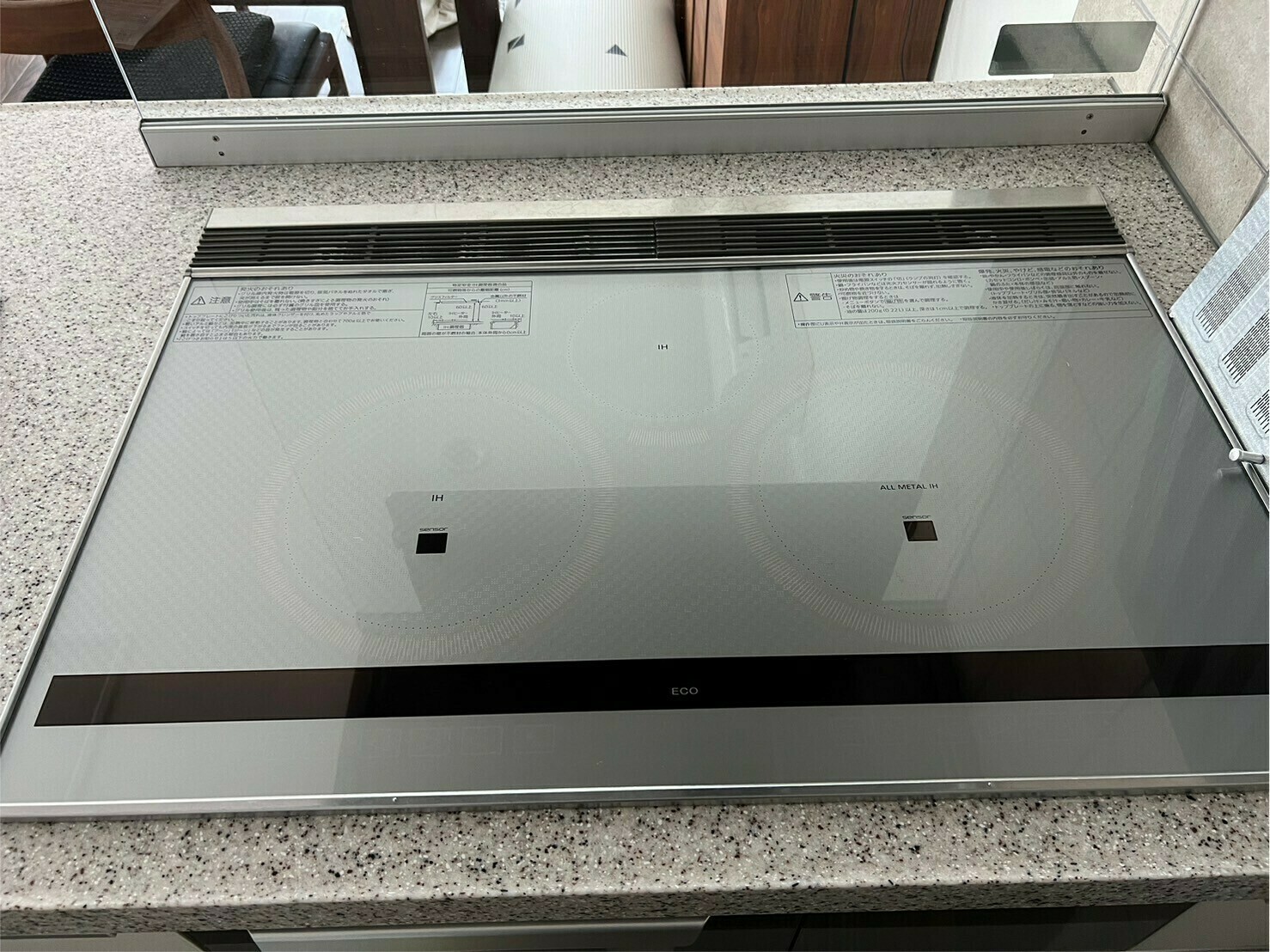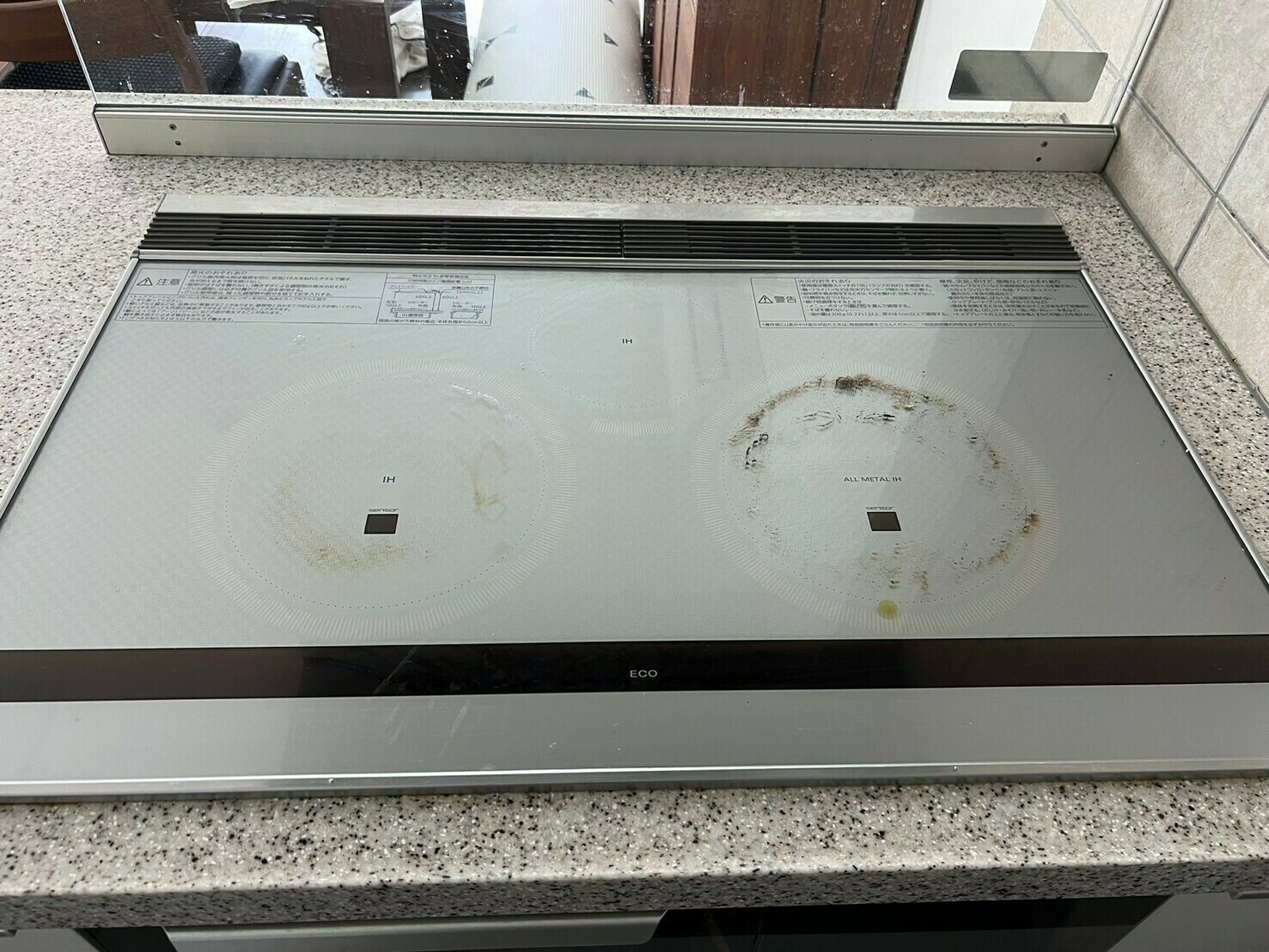 IHコンロ奥のガラス板部分は、油はね汚れがついています…