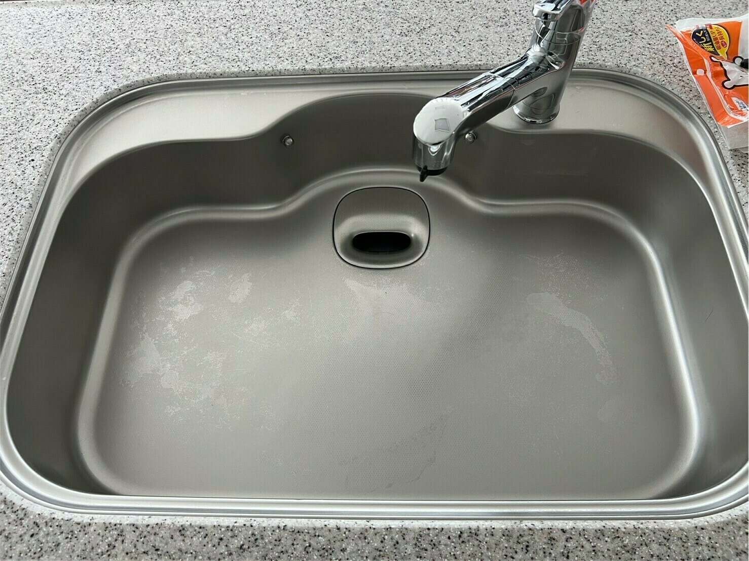 シンクの淵は、何かを置いていたような跡が残っています😑