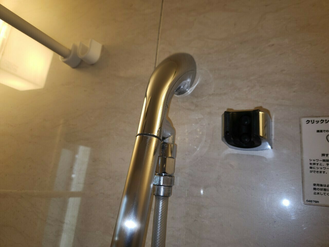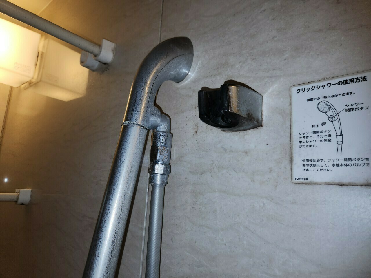 シャワーヘッドをかけるフック周りには黒カビが発生しています😱