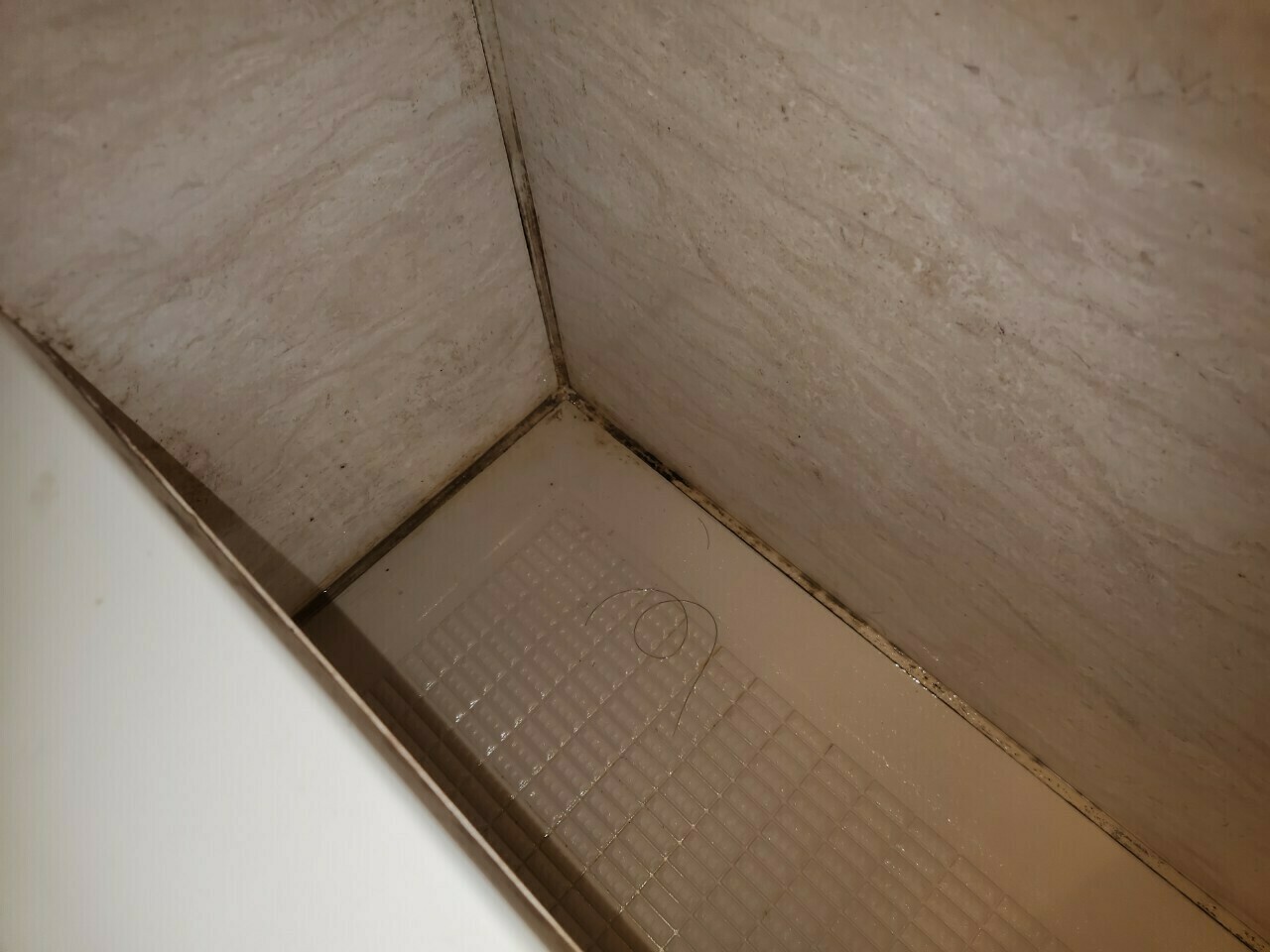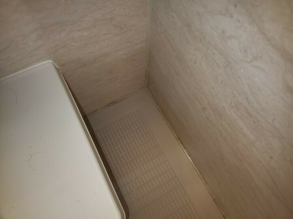 浴槽と壁の間には黒カビ汚れが発生しています💦