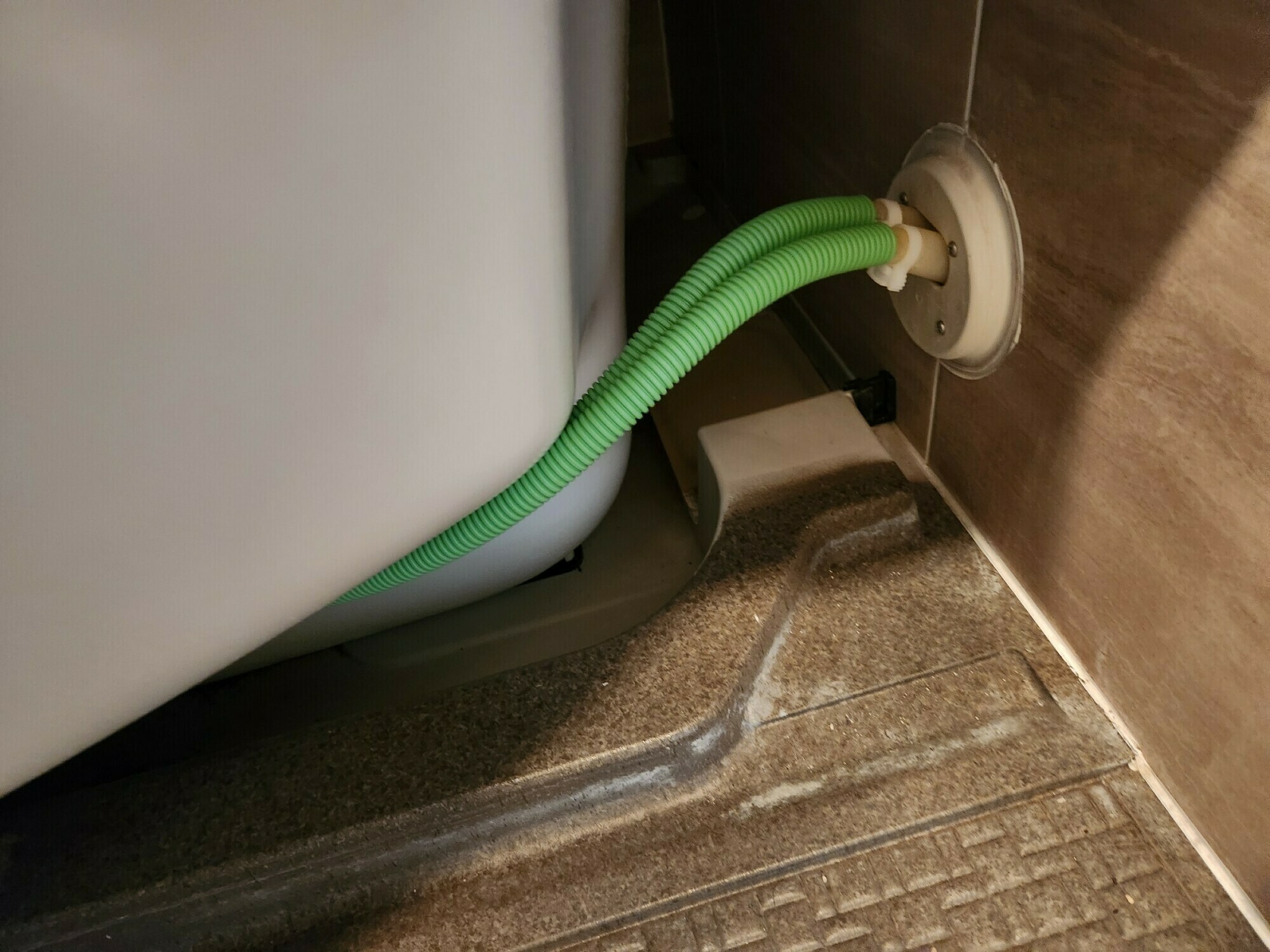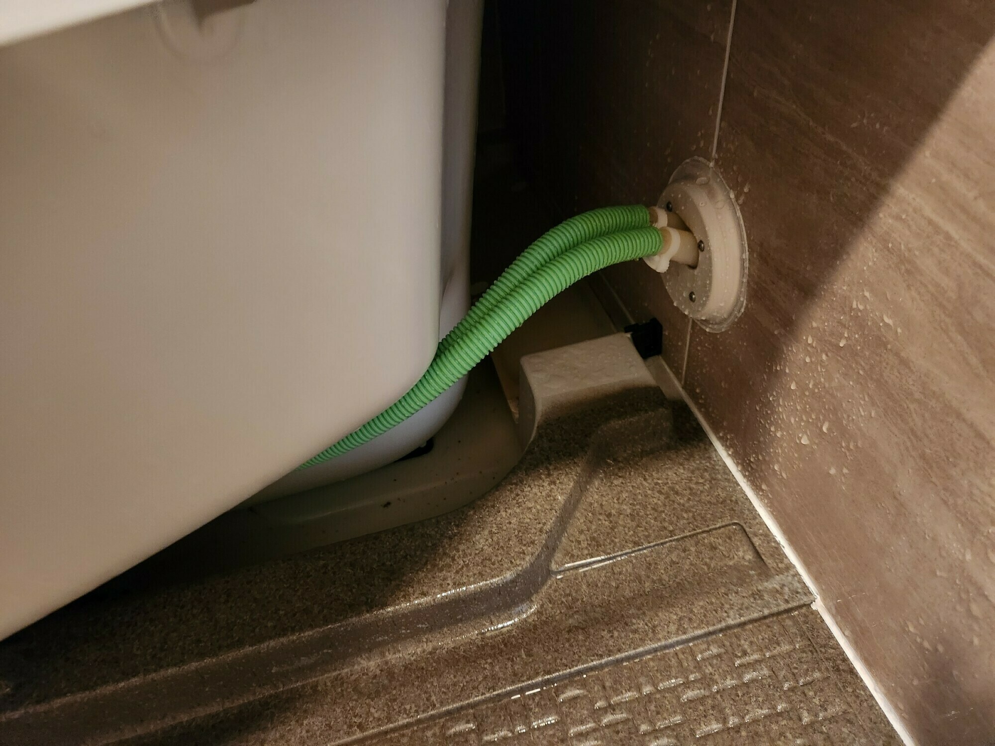 浴槽周りの床はカルキ汚れと石鹼カス汚れで白くなっています😨