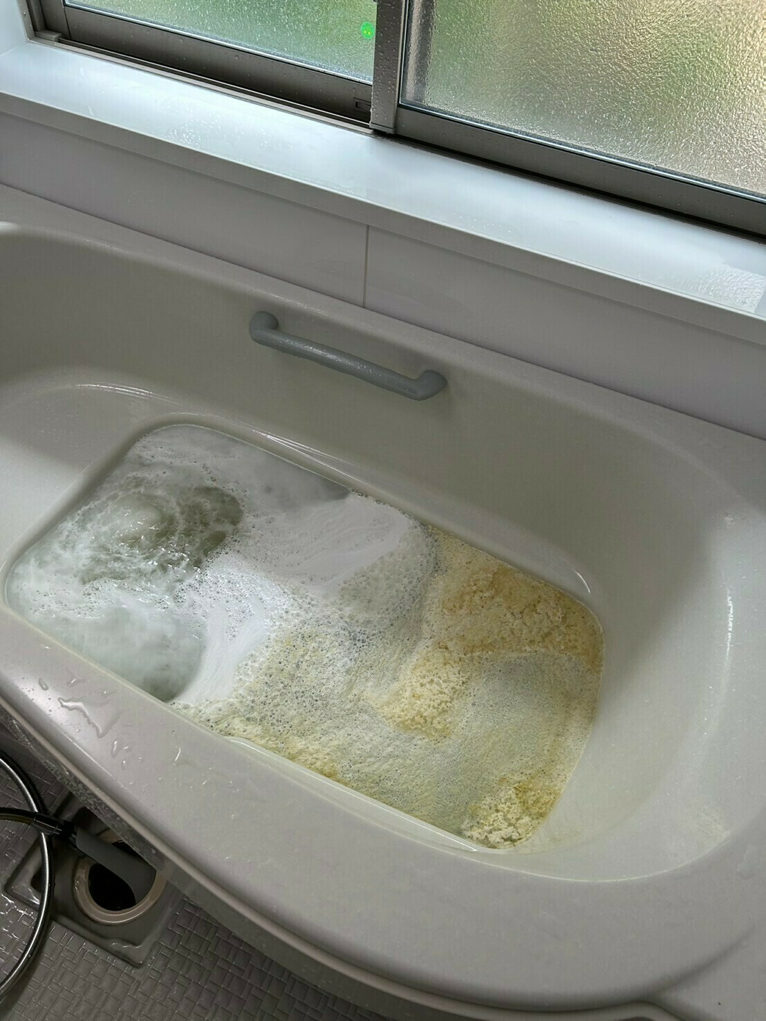 酸性の洗剤を入れた直後のバスタブ内のお湯がこちら!