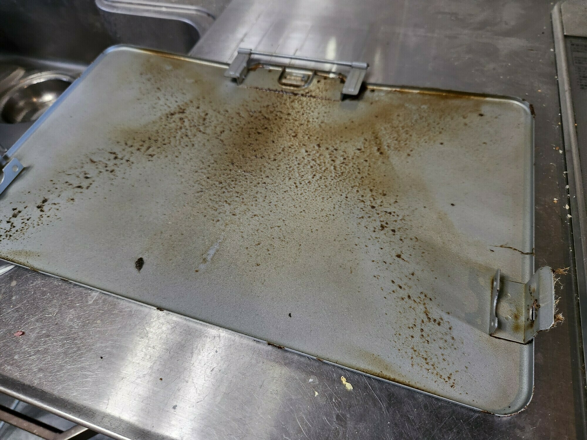 オイルトレイに入った油汚れはすっかりなくなり、ギタギタ感もなくなって綺麗になりました✨