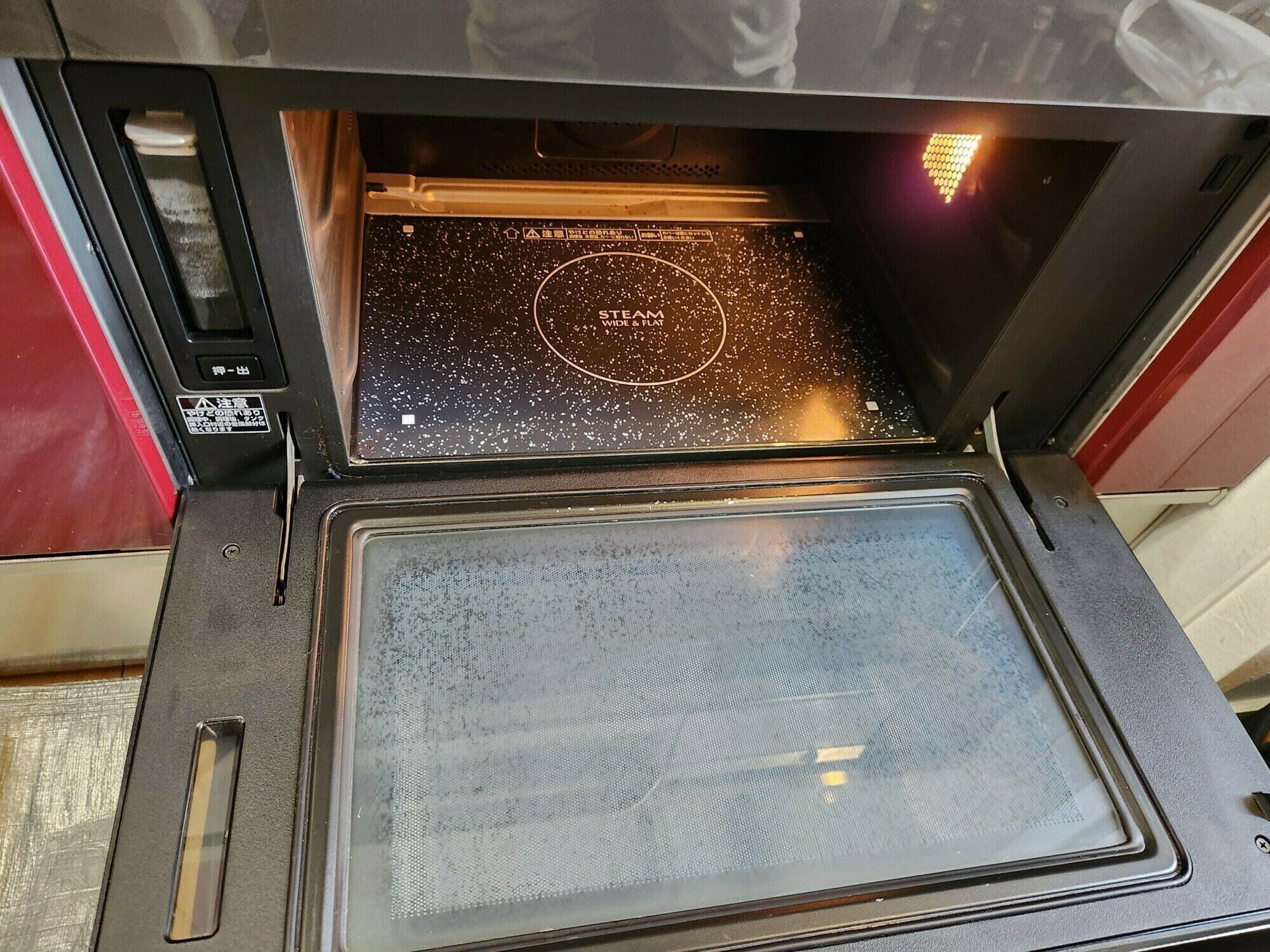 オーブンレンジの扉の内側や奥の壁の油汚れはなくなり、綺麗になりました✨ギタギタ感がなくなってスッキリした印象になりましたよね😊