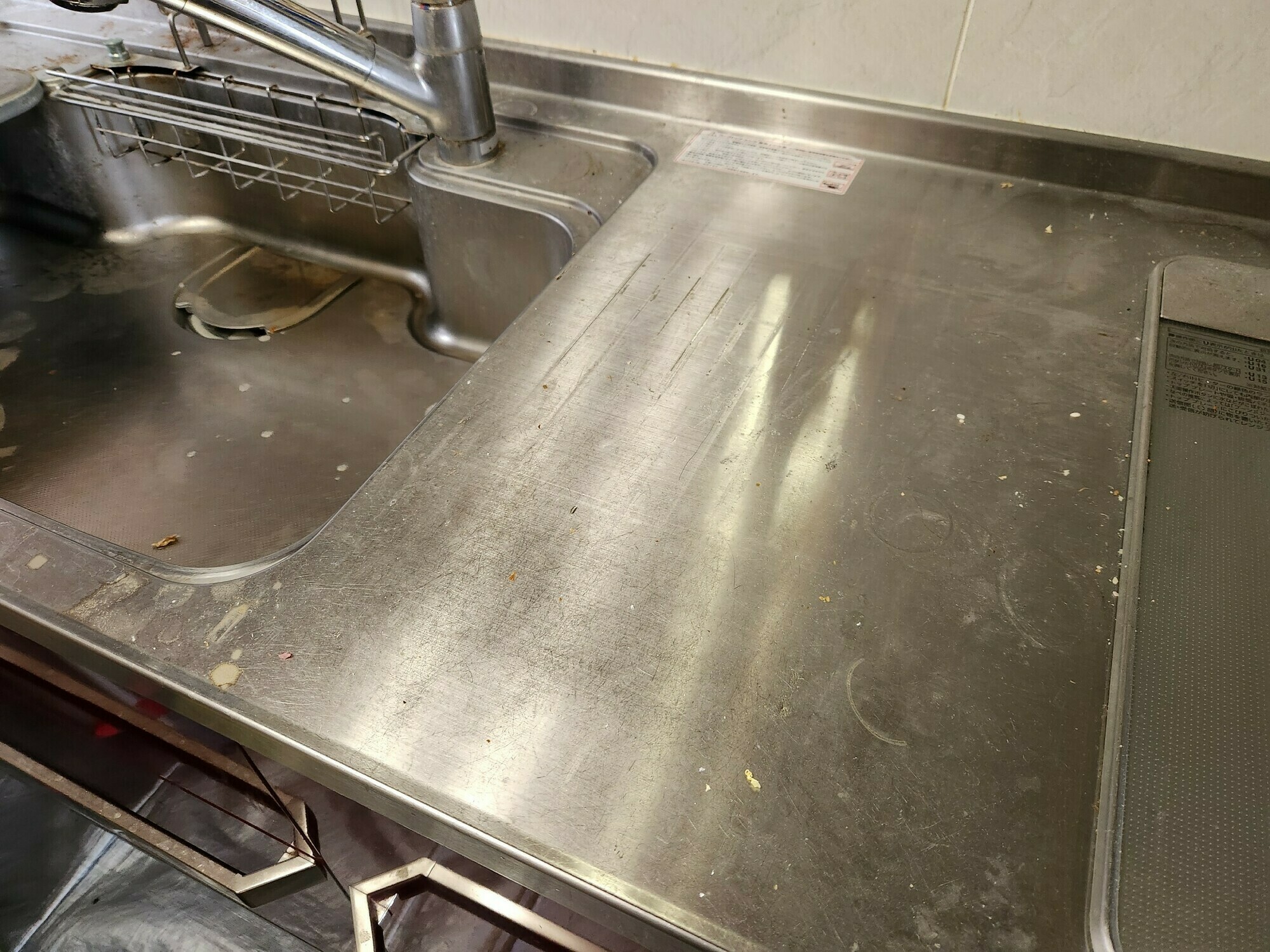 作業場には食品カス汚れや何かを置いていた跡が残っていますね💦ステンレス部分が綺麗になってくれるといいのですが…