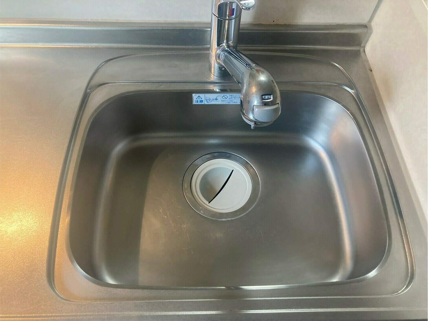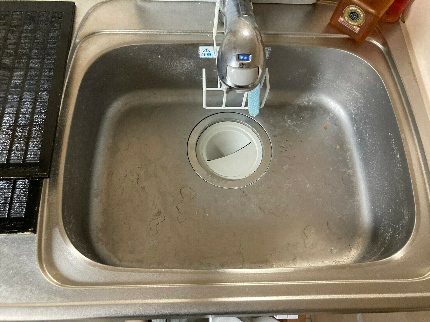 シンクはカルキ汚れや洗剤汚れ、蛇口部分はウロコ汚れがついています😵💫