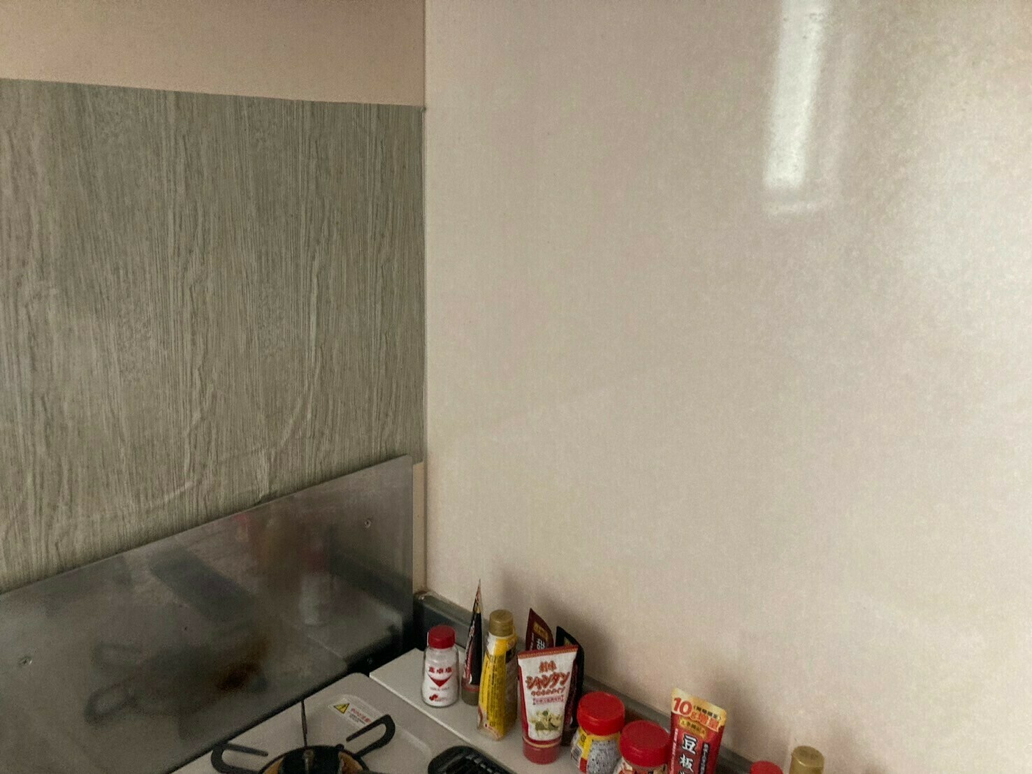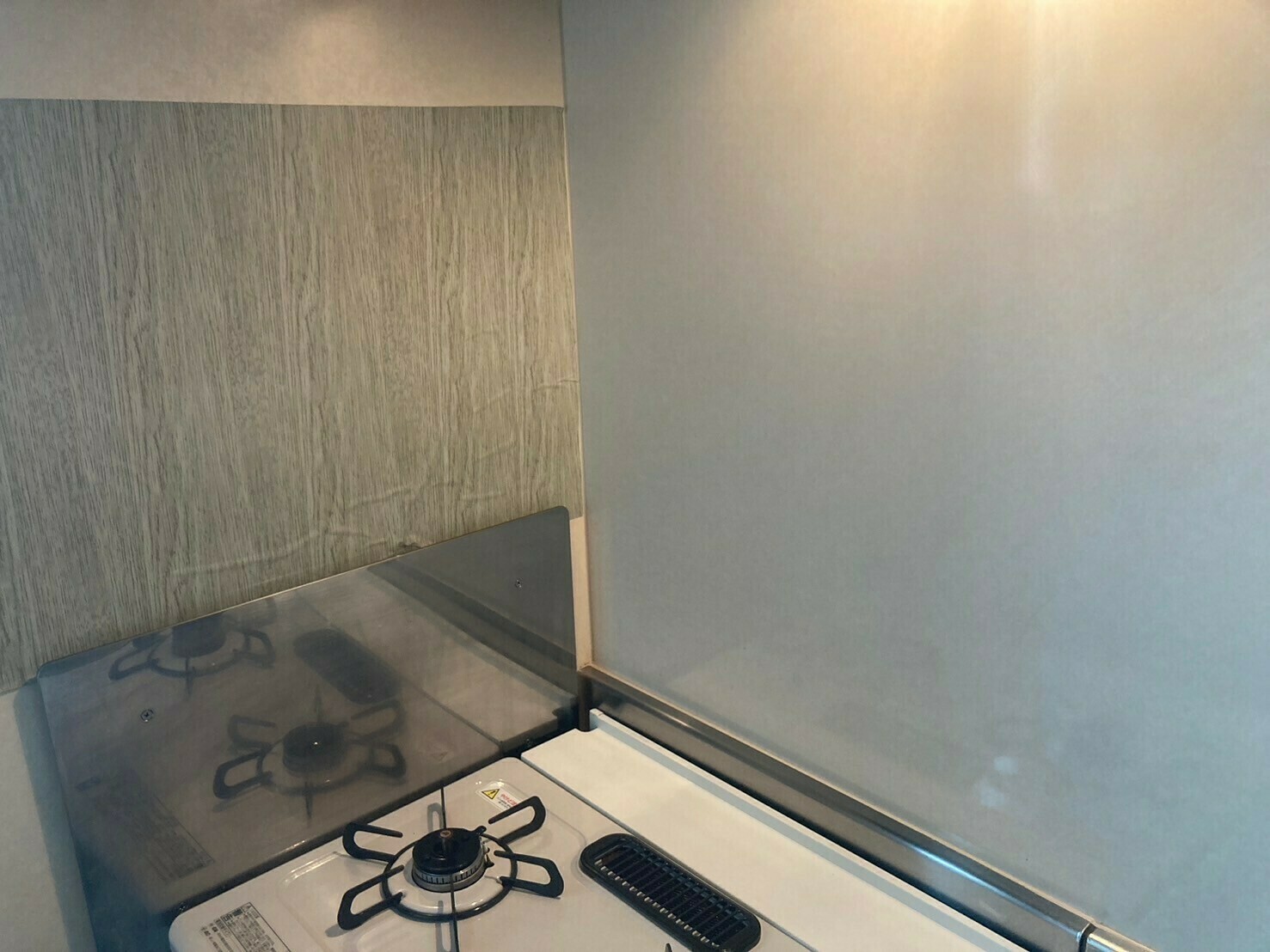 写真では分かりにくいのですが、壁に油跳ね汚れが上部についています…