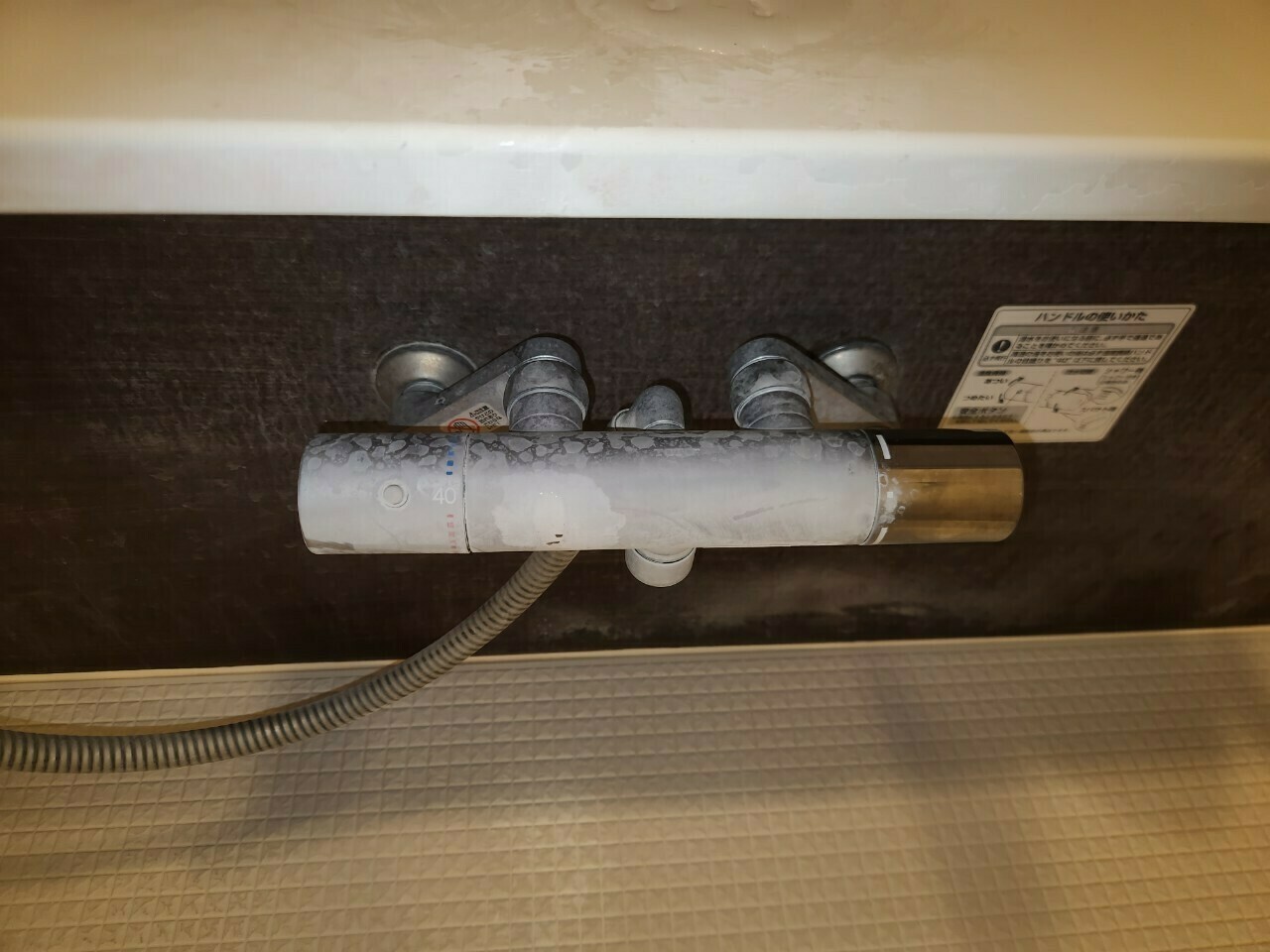 鏡と同じのように蛇口もカルキ汚れで真っ白ですね…