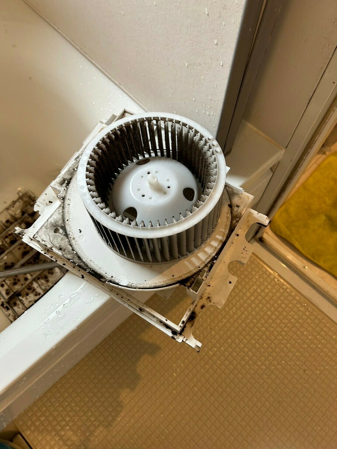 お風呂の換気扇のカバーを外すと、カバーの内側には大量の黒カビが…⚡