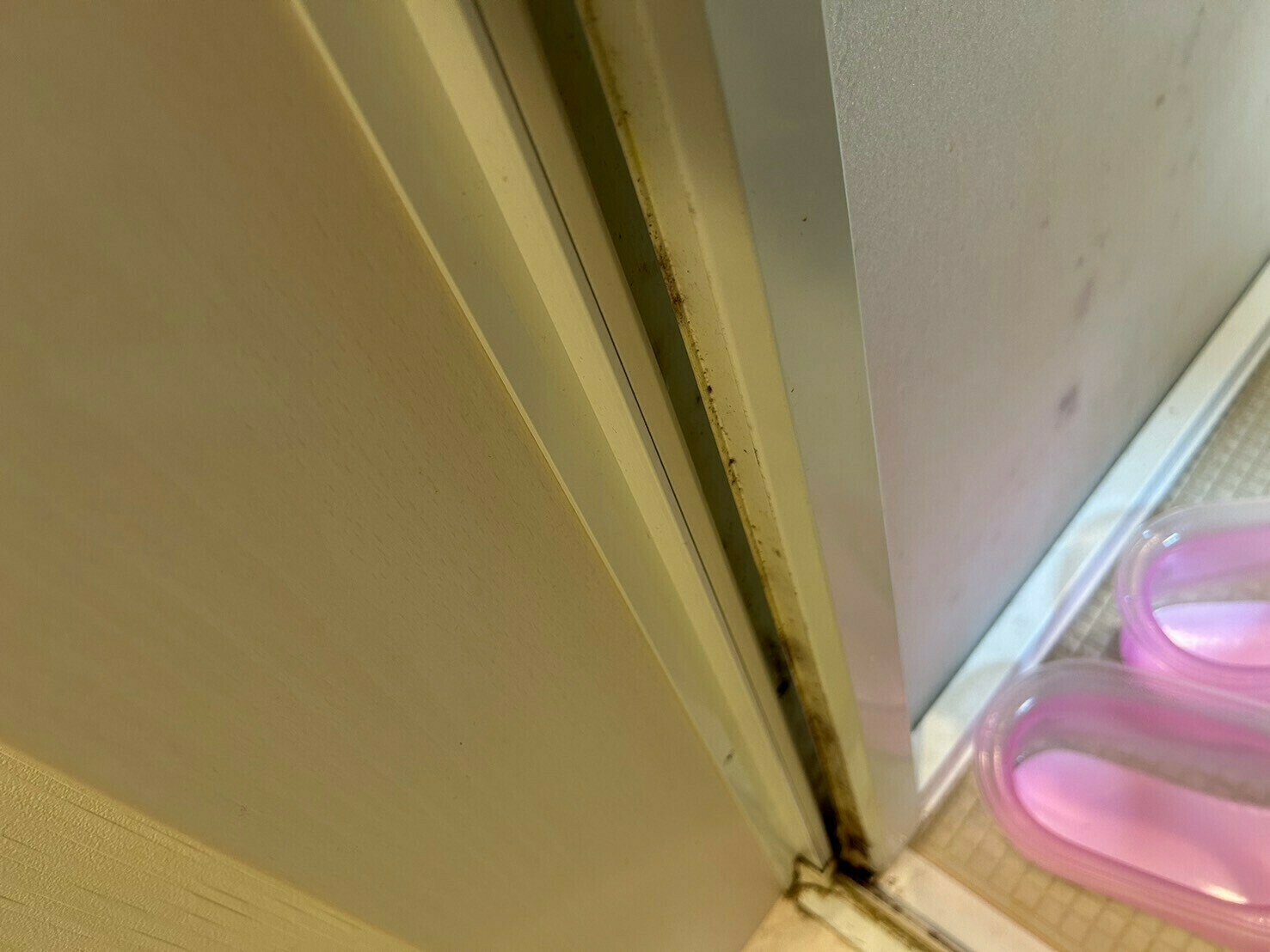 サムネイル画像にあったこちらの収納化粧板にも、黒カビが発生していますね💦
