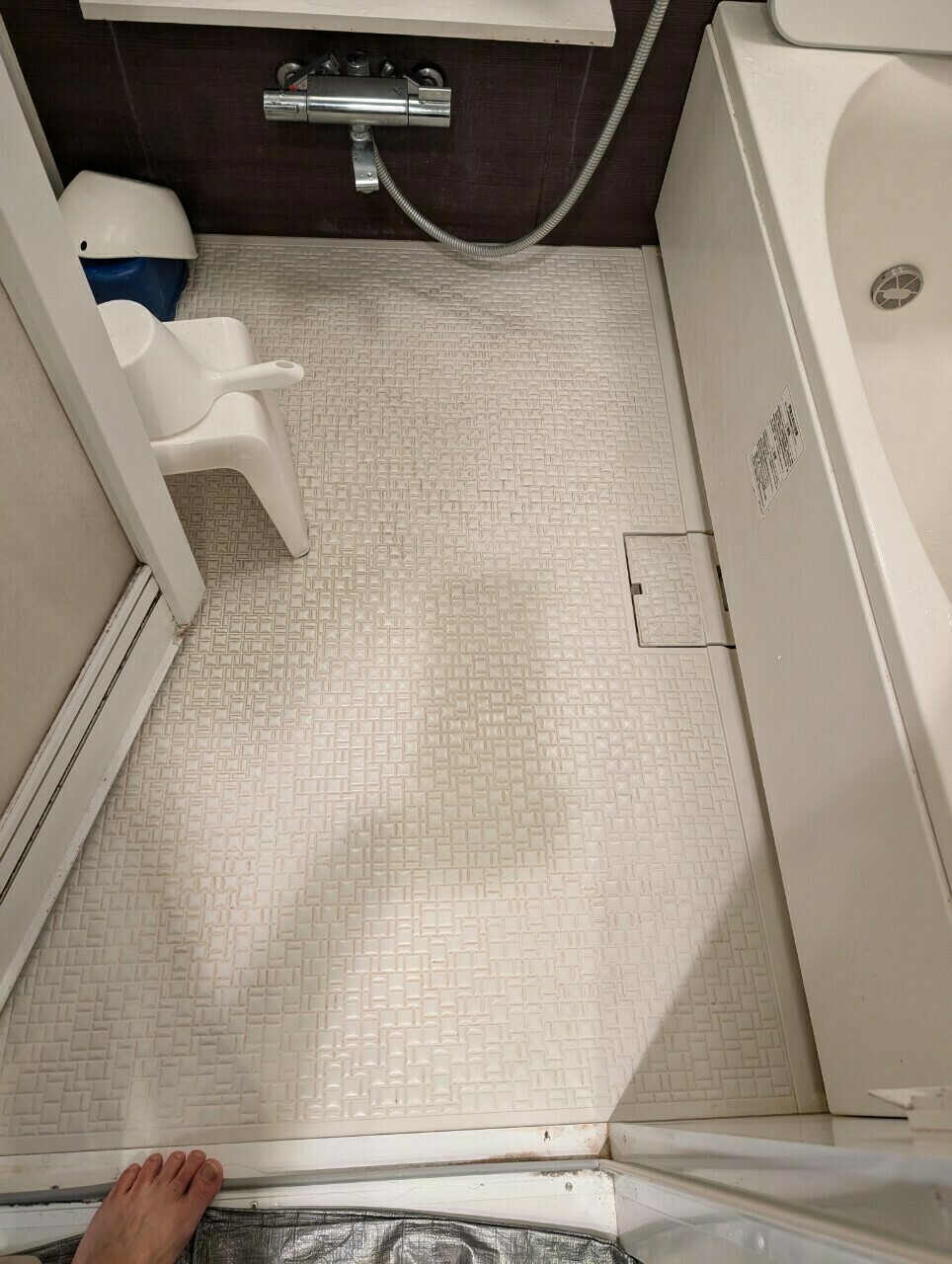 エプロンも浴室の扉も同様な汚れがついています😣