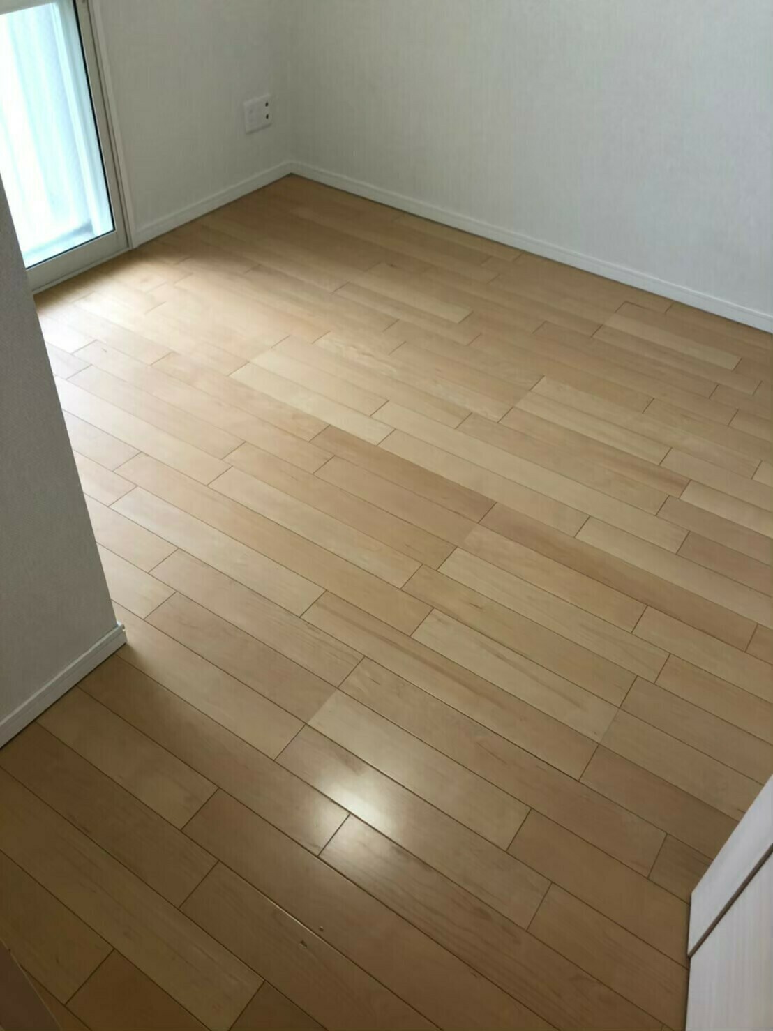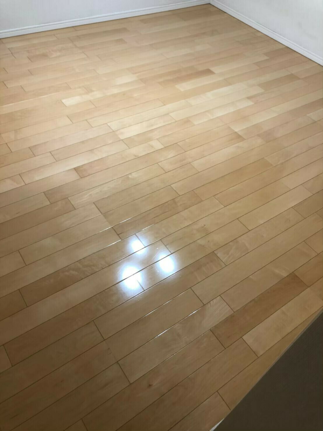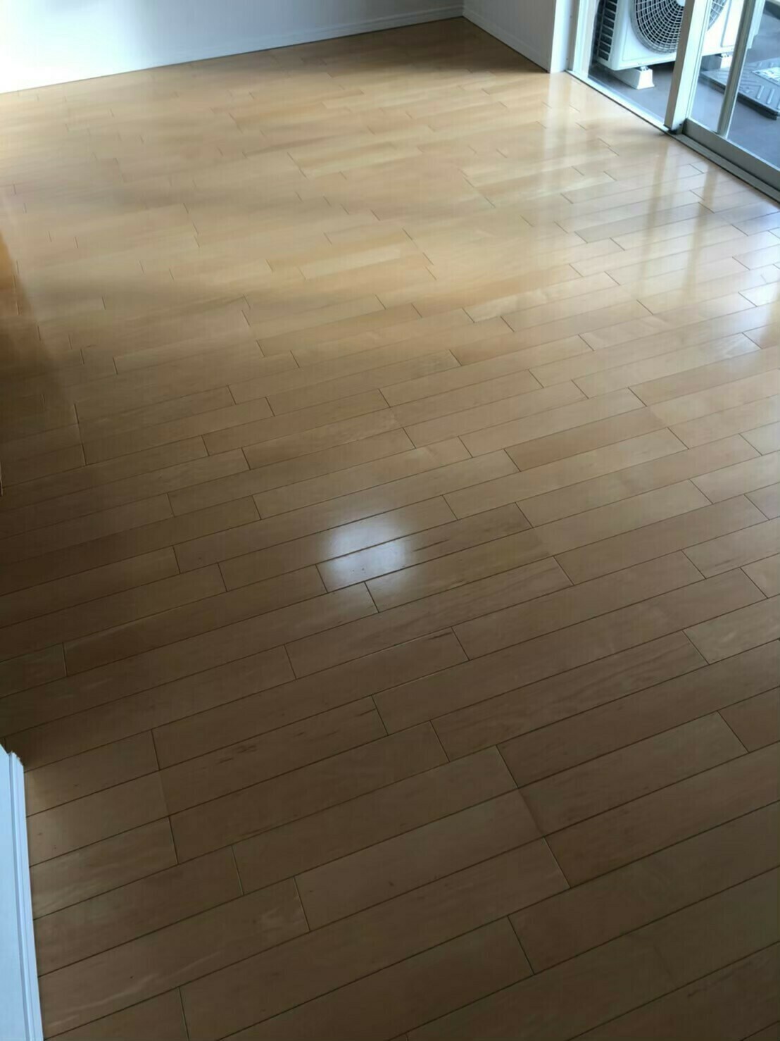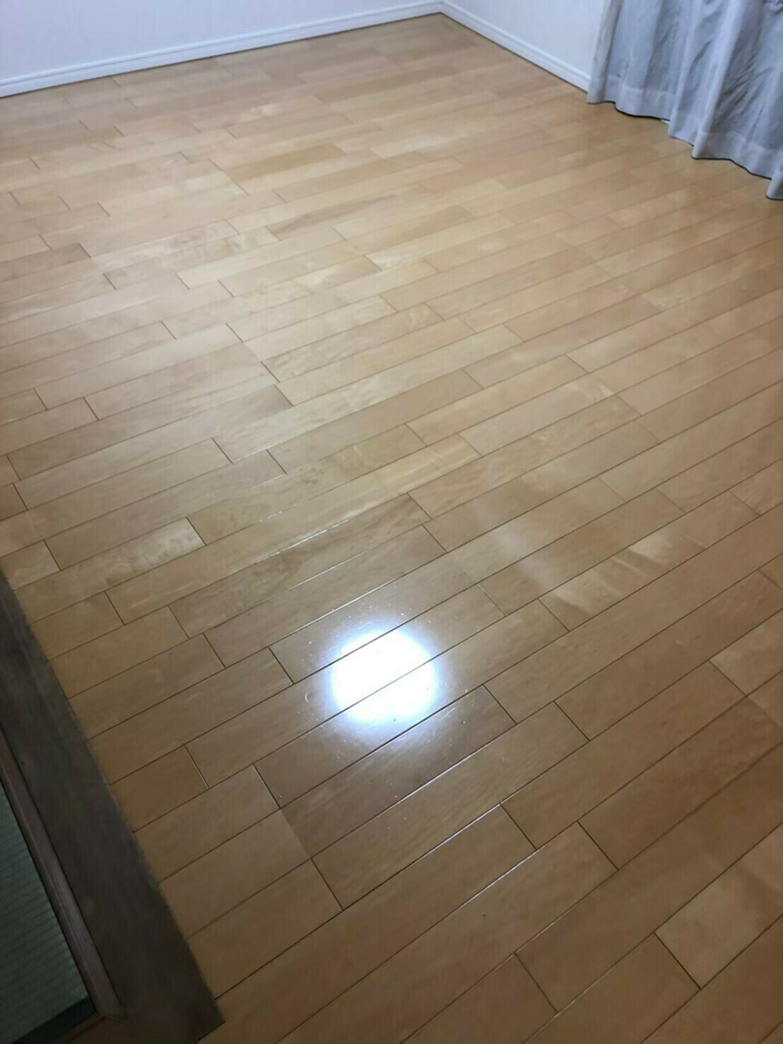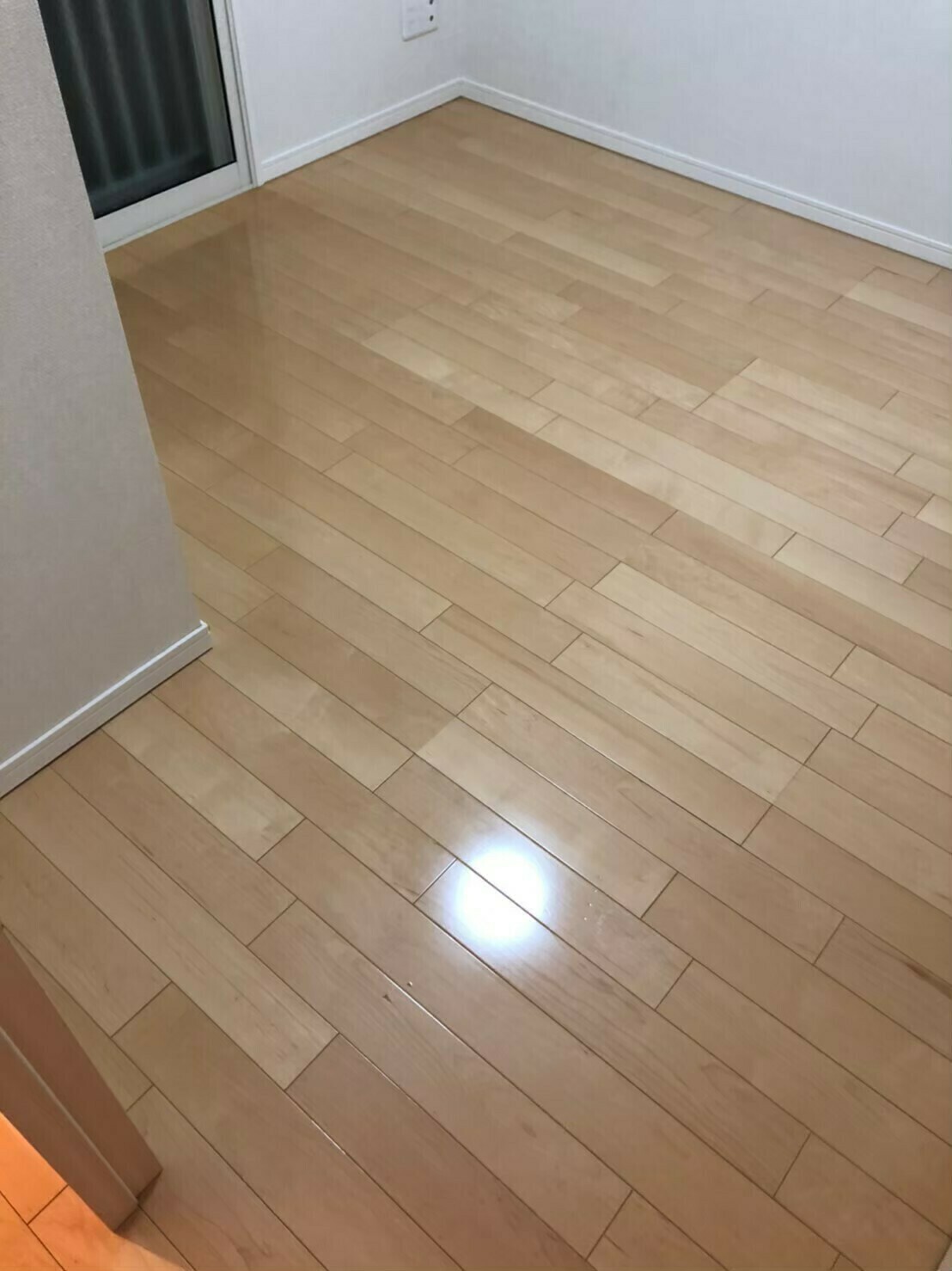 見た目もだいぶキレイになり、床にツヤが出ているのがわかると思います。床のワックスがけを行うだけでも、部屋が明るくなりだいぶ印象が変わりますね。