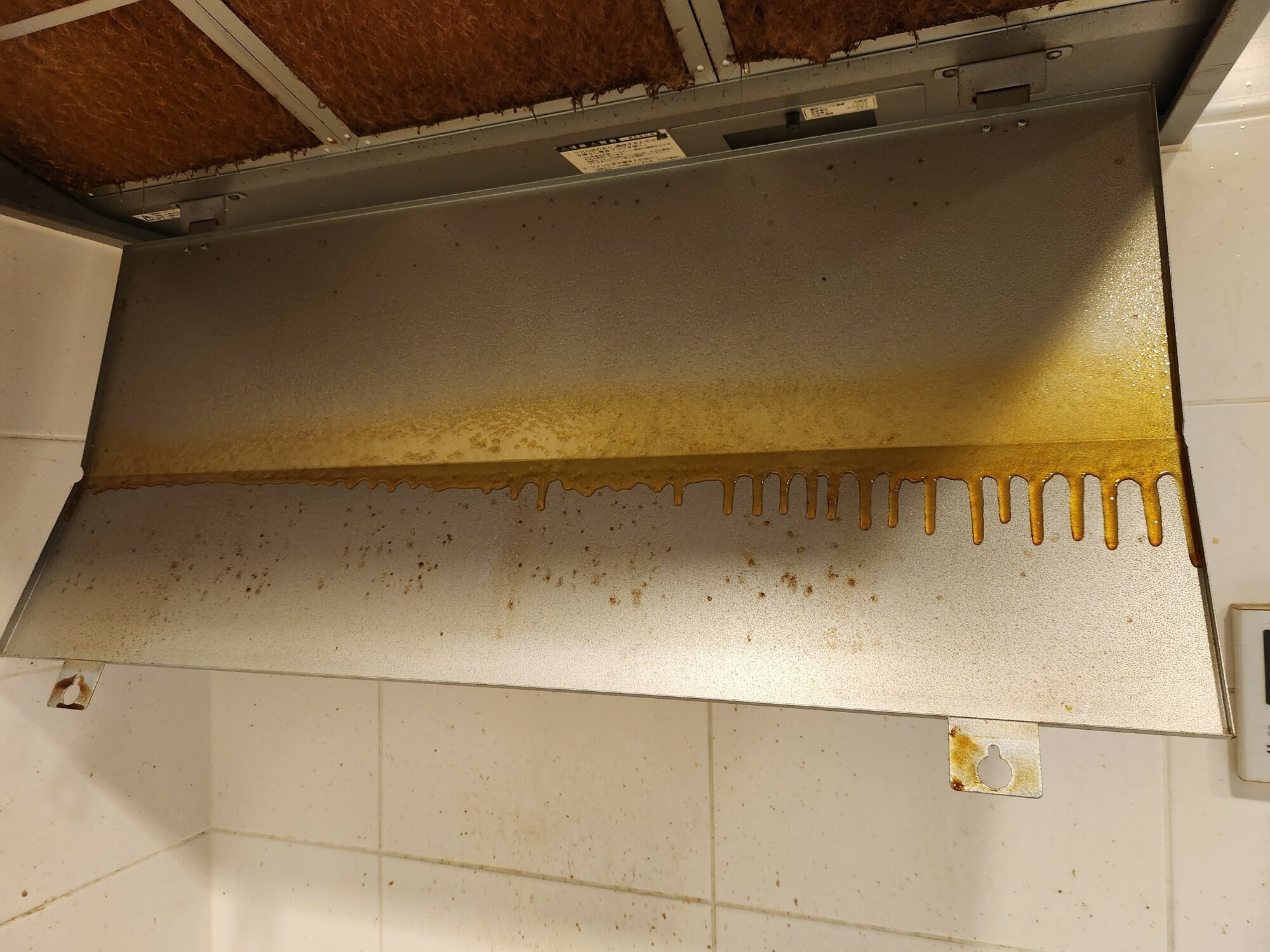 換気扇(レンジフード)クリーニングでは、油汚れが付着した換気扇(レンジフード)をしっかりと分解して、換気扇全体のクリーニングを行います。