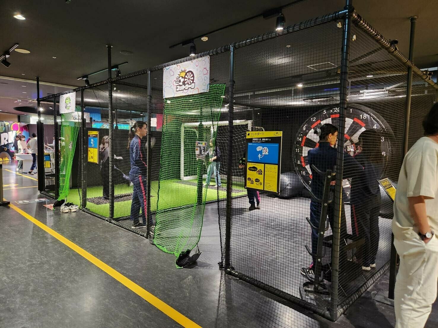 右側のコーナーでは、ダーツに向かってサッカーボールを蹴り、得点をとっていくゲームでした😀