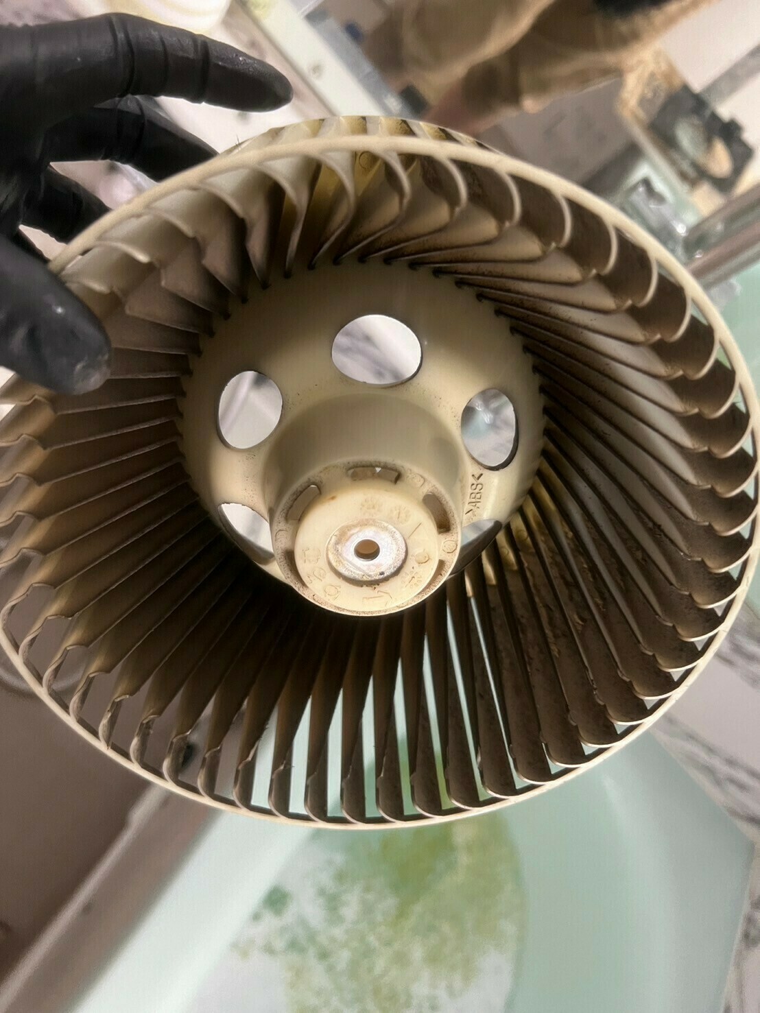 換気扇のカバーの内側は、黒カビ汚れがついています😱