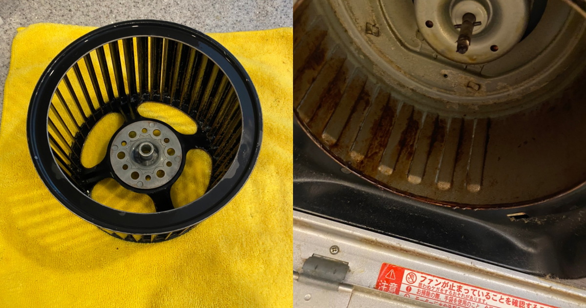 上記画像のように、レンジフードが換気扇の頑固な油汚れの掃除に悩んでいる方も多くいらっしゃると思います。