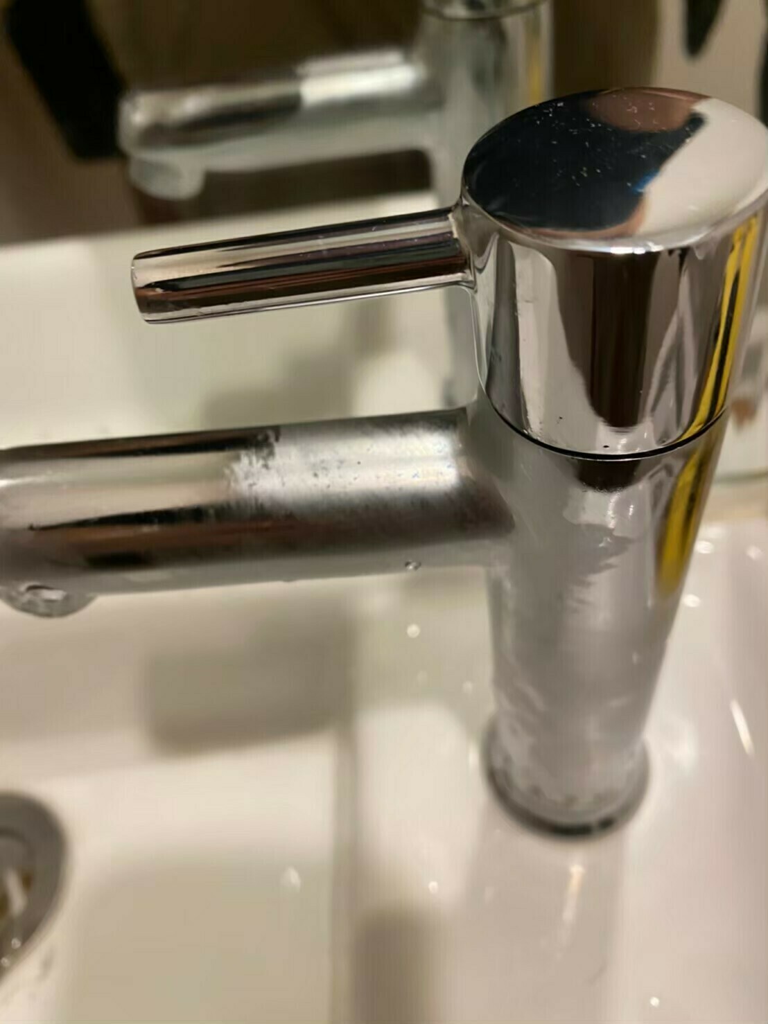 蛇口の中央に、白っぽい汚れと傷が混ざったようなものが確認できますね。