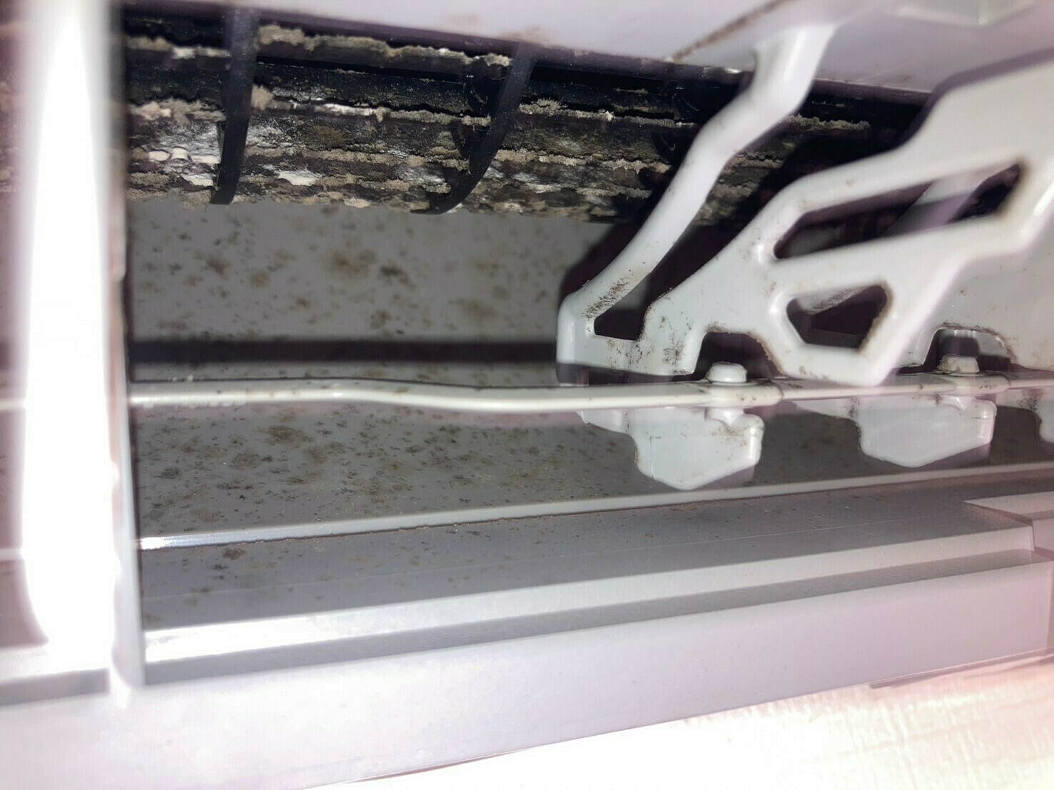送風口だけでなく、ルーバーにも黒カビ汚れがついています😫