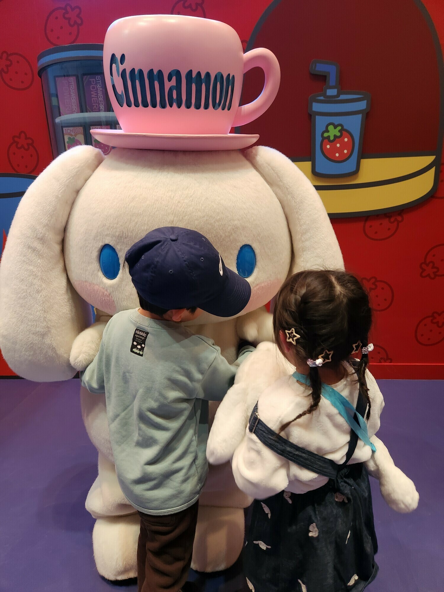 娘の大好きなシナモロールにグリーティングに行っても、息子が飛びついていきました 笑