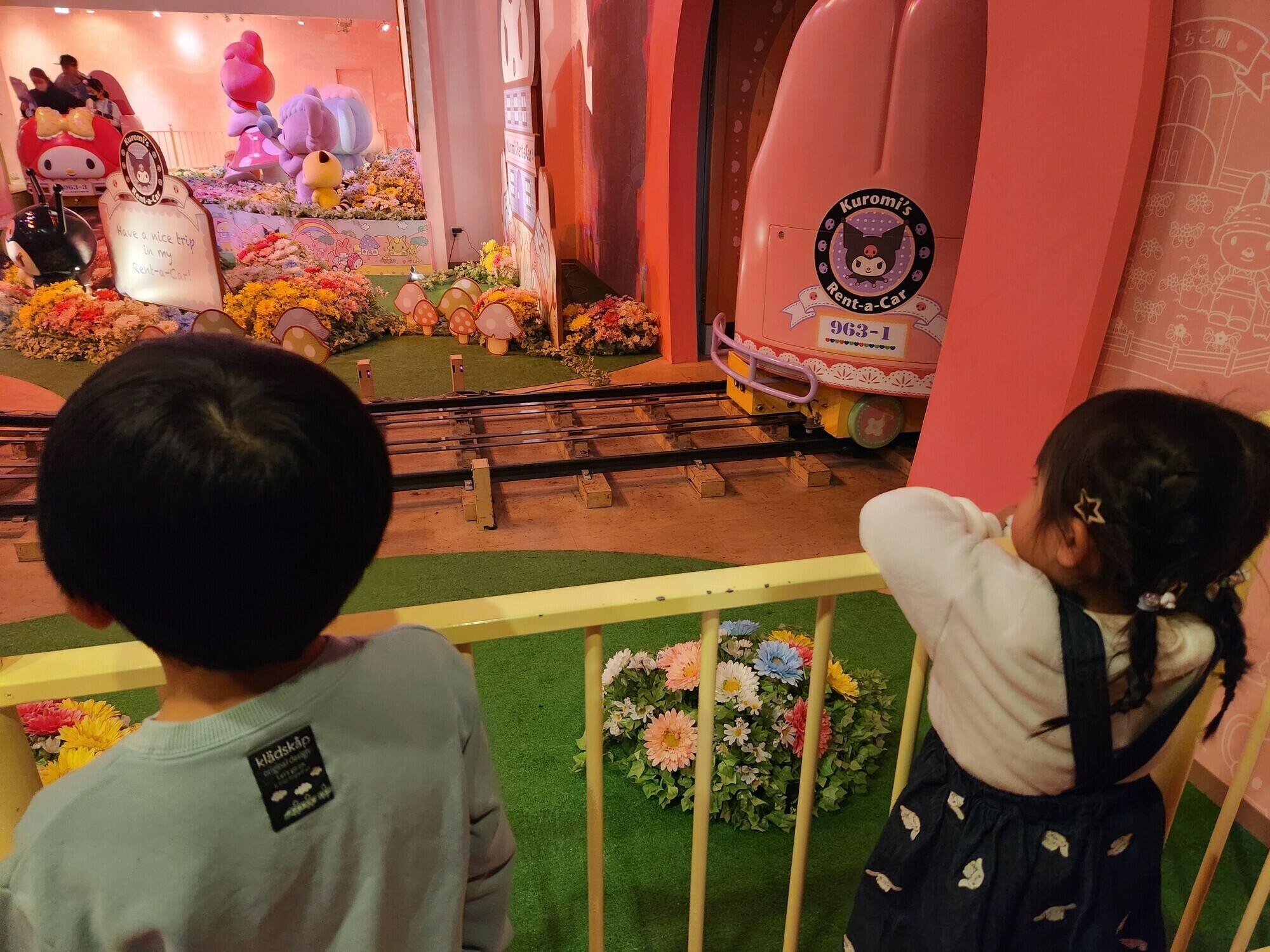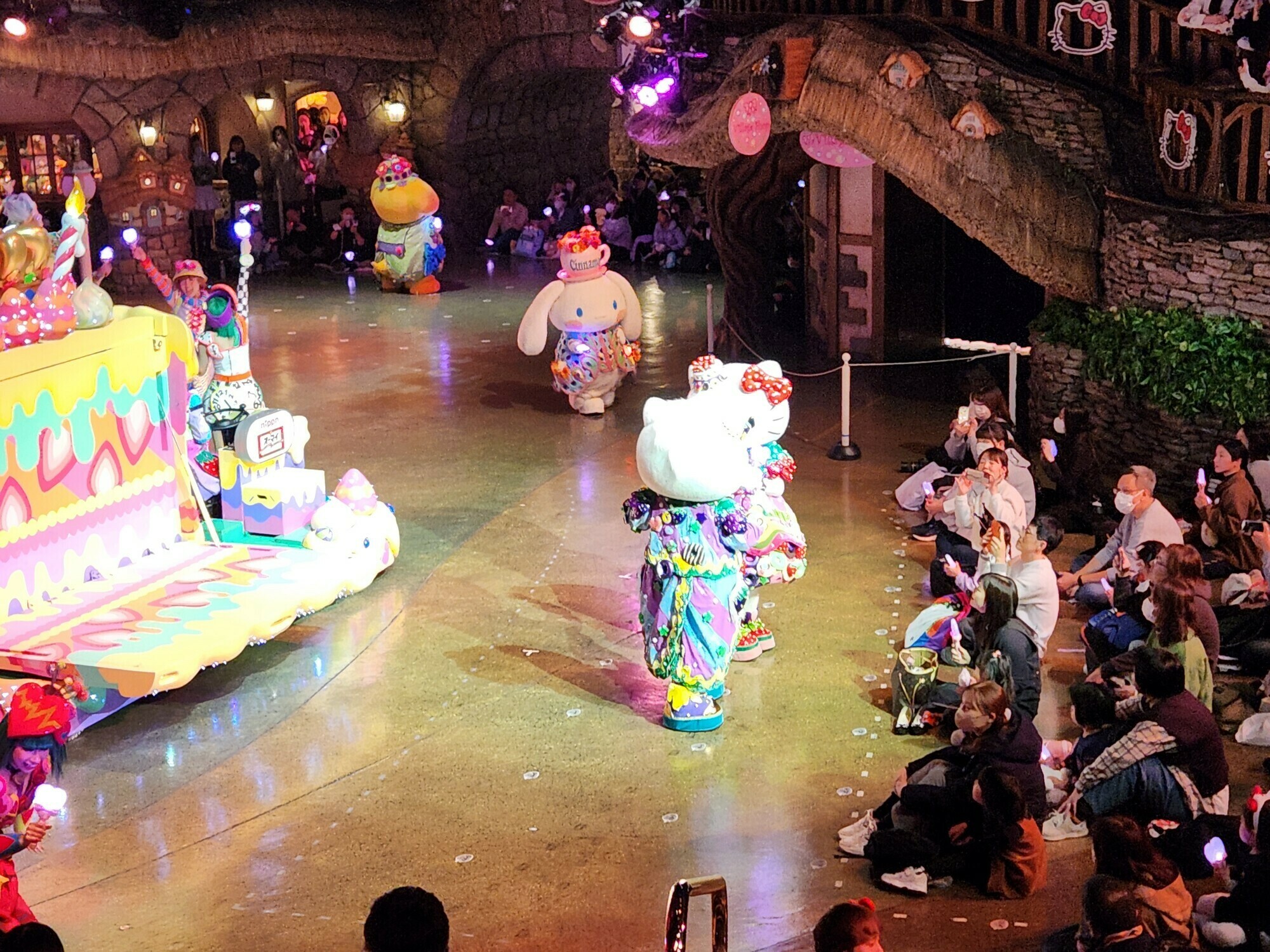 マイメロが目の前を通り過ぎたり、いろんなキャラクターが通るので、子供たちは大興奮 笑