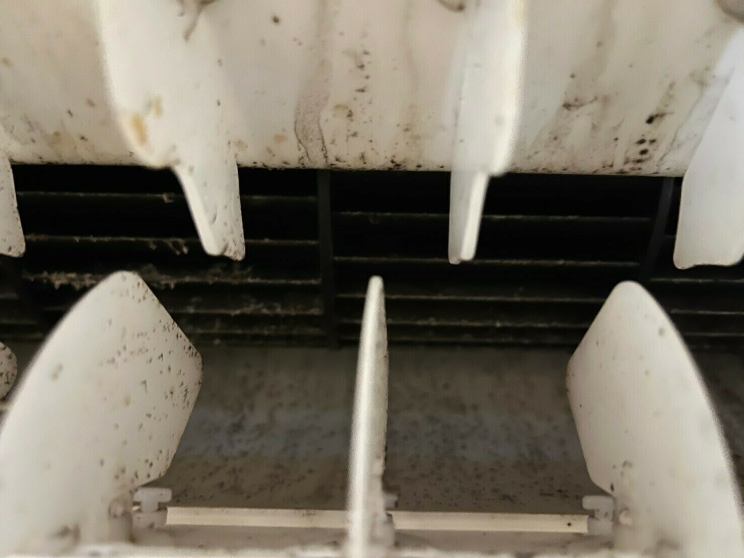 送風口や送風ファンには、ダルメシアン柄になった黒カビ汚れがたくさんついています😱