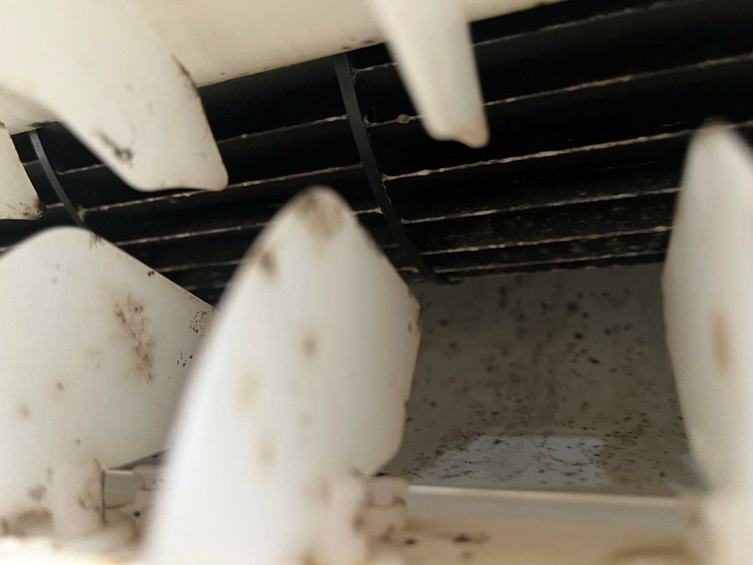 上記の画像を見てもらえると分かると思いますが、エアコンは外側の汚れよりも内部にカビが溜まりやすい構造となっています。