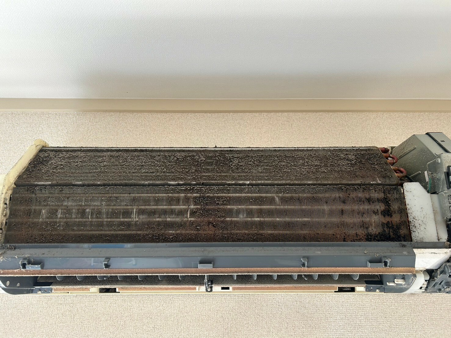 普段はエアコンの外側しか見ることはありませんが、エアコン内部まで見てみると、非常に汚れているものです。