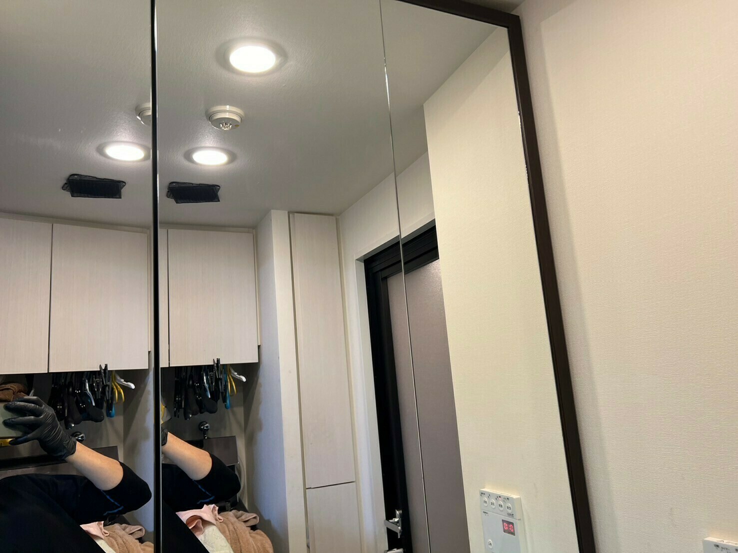 鏡について拭き上げ跡や水滴汚れ・指紋などは完全になくなり、はっきりと自分の姿を確認できるようになりました!!