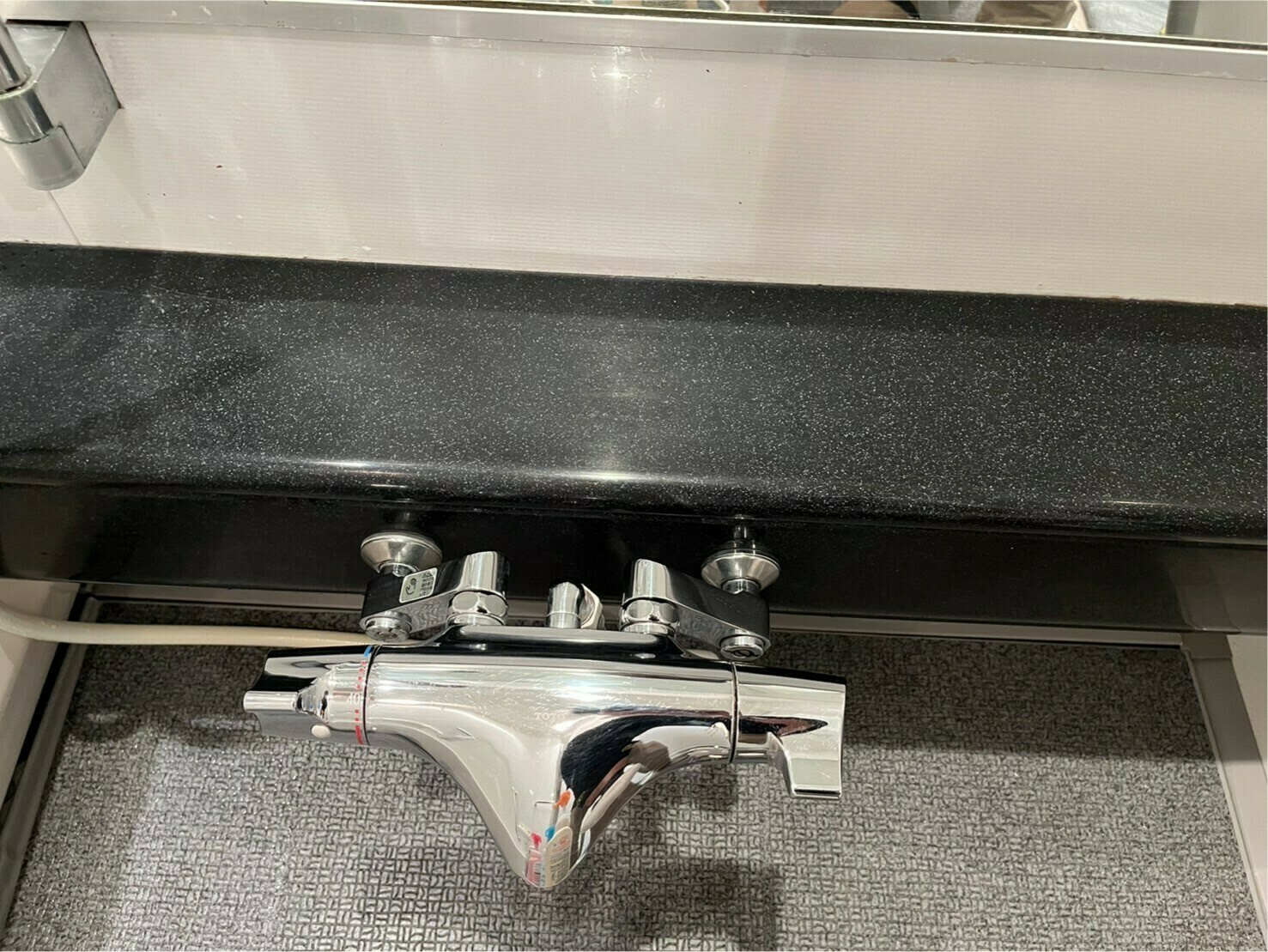カウンター部分にあった物を置いた跡や石鹼カス汚れは完全になくなり、黒くてカッコイイカウンターへと生まれ変わりました✨