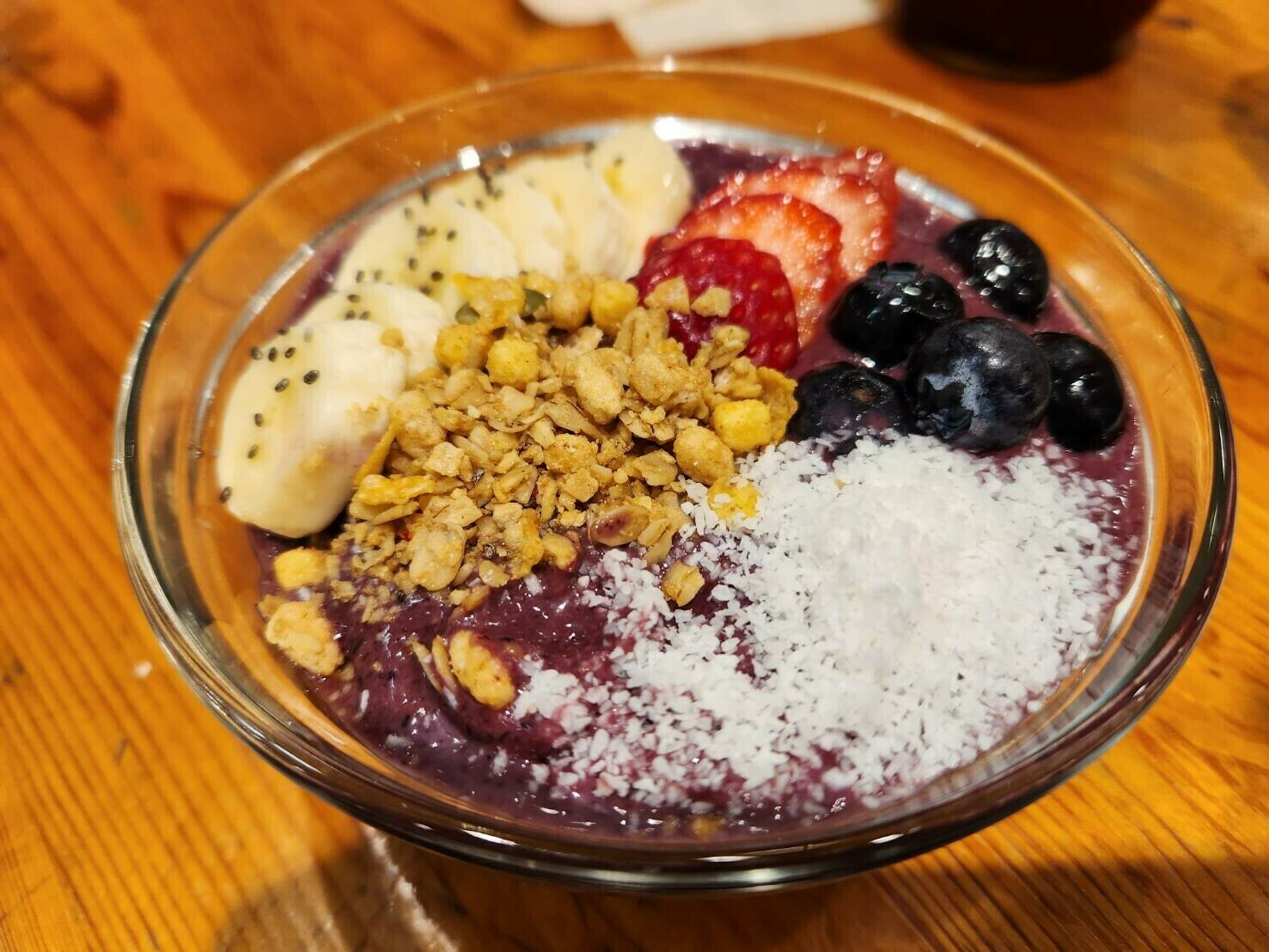 スムージーチックでしたが、上にトッピングされているグラノーラの食感やアサイーのつぶつぶした食感を楽しみながら食べました🎶