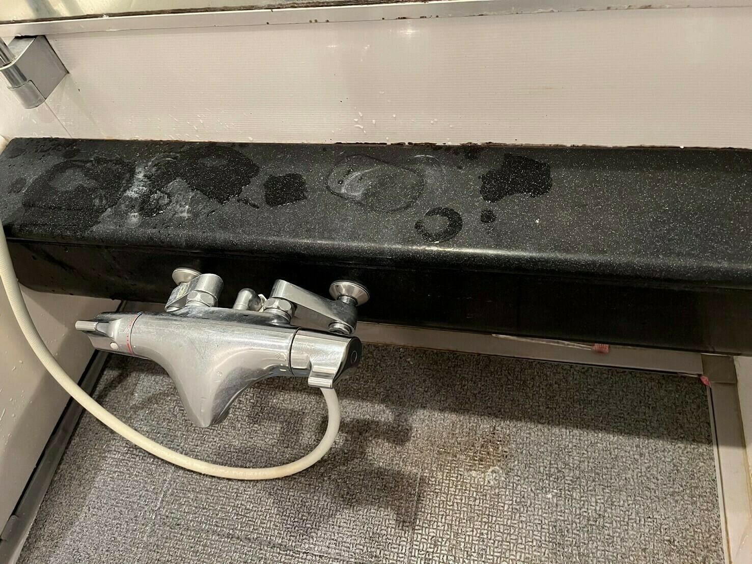 鏡の下部分にも黒カビ汚れが発生しています💦