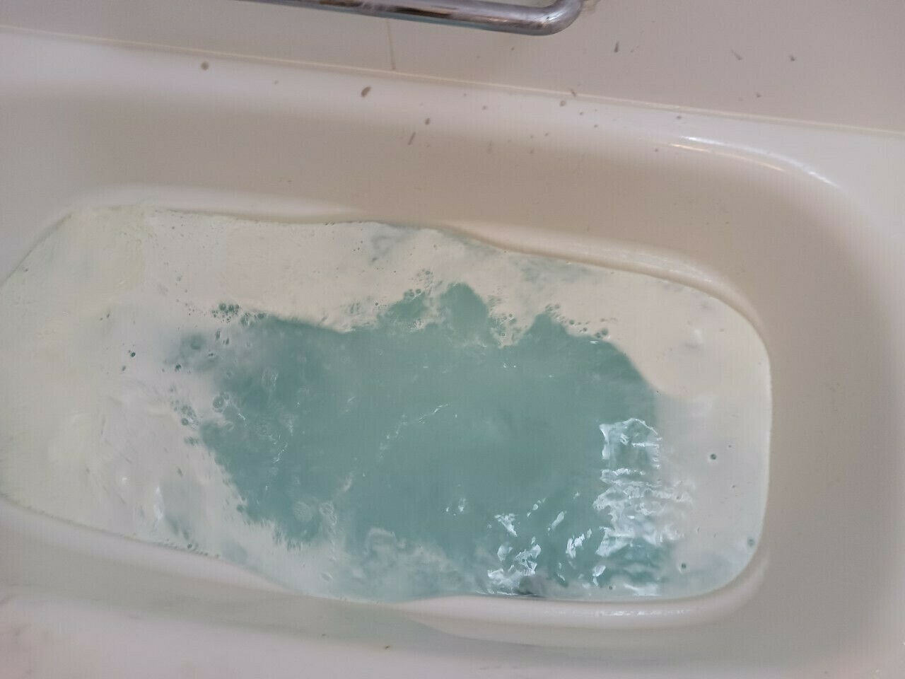 少し時間をおき、バスタブ内の汚水の変化があまり見られなくなり、汚れが完全に湧き出てこなくなったのを確認してから、バスタブ内に溜まった汚れとさよならします。