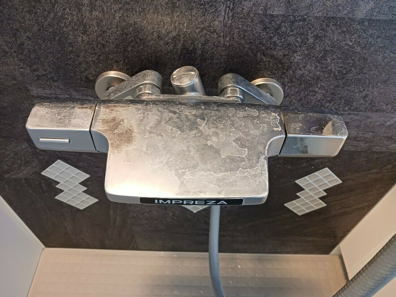 シャワーヘッドはカルキ汚れで白くなっていますね💦