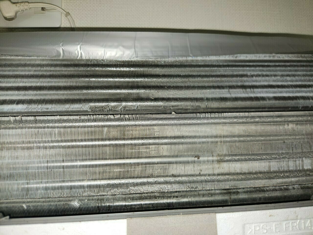 フィルターを通り越してアルミフィンに埃が溜まっていることがわかります💦