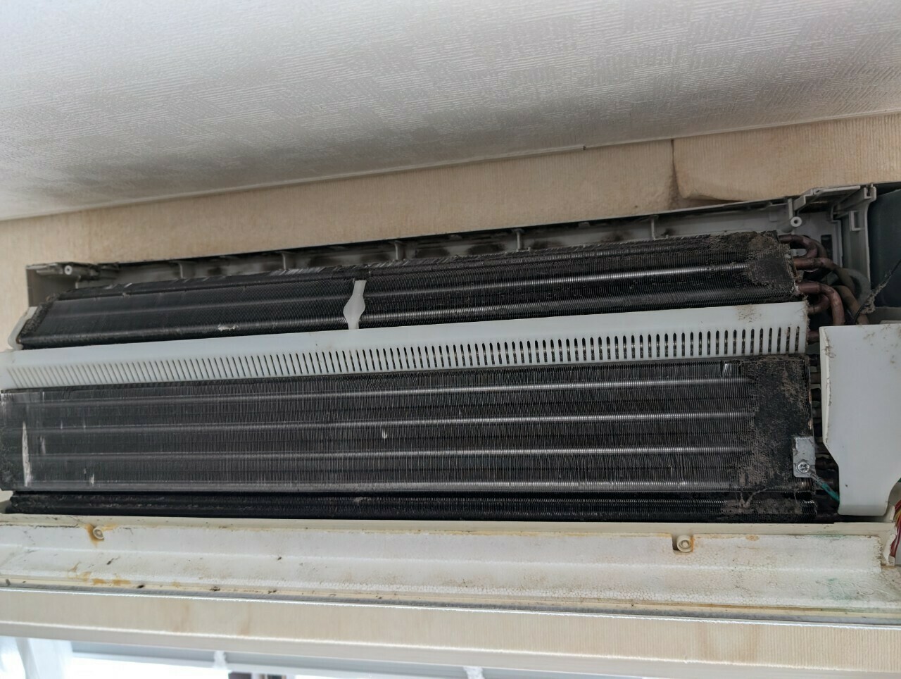 黒カビと埃がびっしりアルミフィンに埋まっていますね😱😱