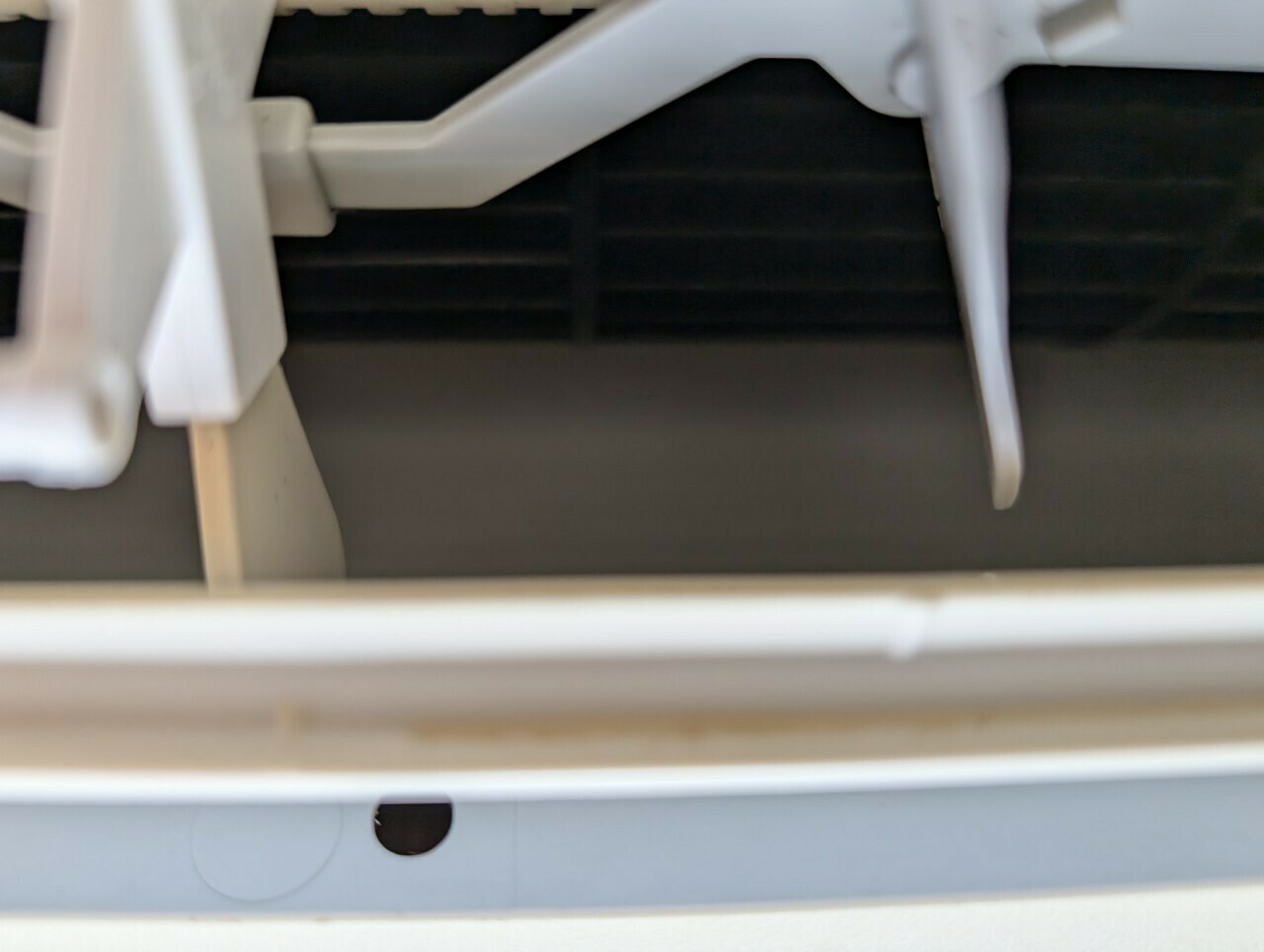 送風ファンには埃、風向板の後方には少しカビが発生しています💦