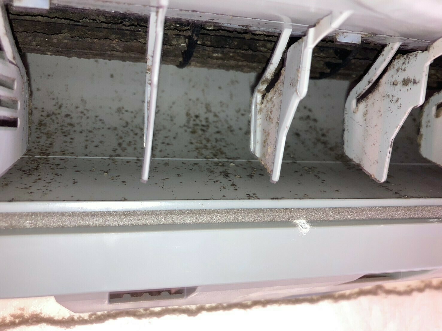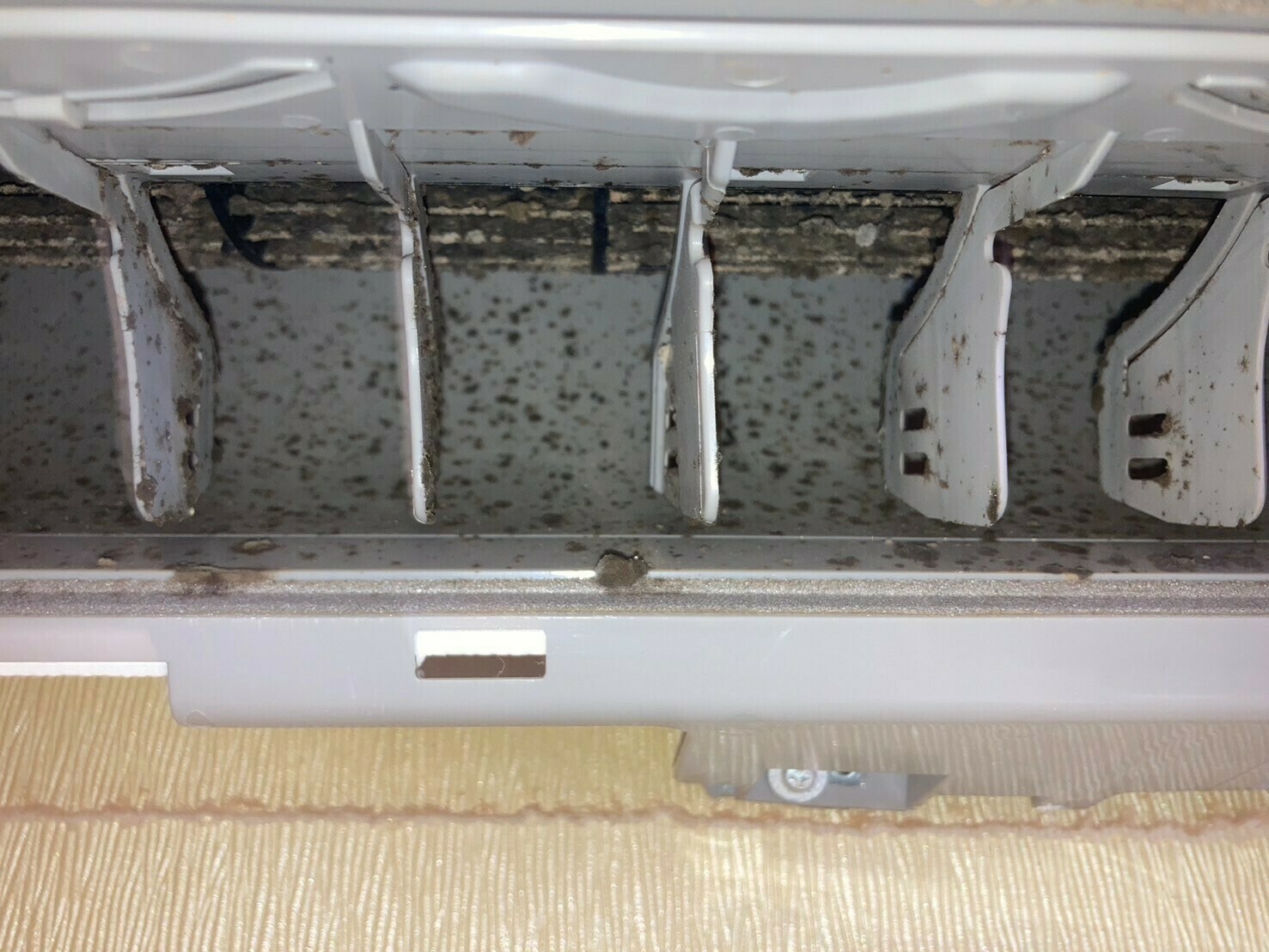 送風口や送風ファンにもカビの上に埃が乗っかっていることが分かります💦