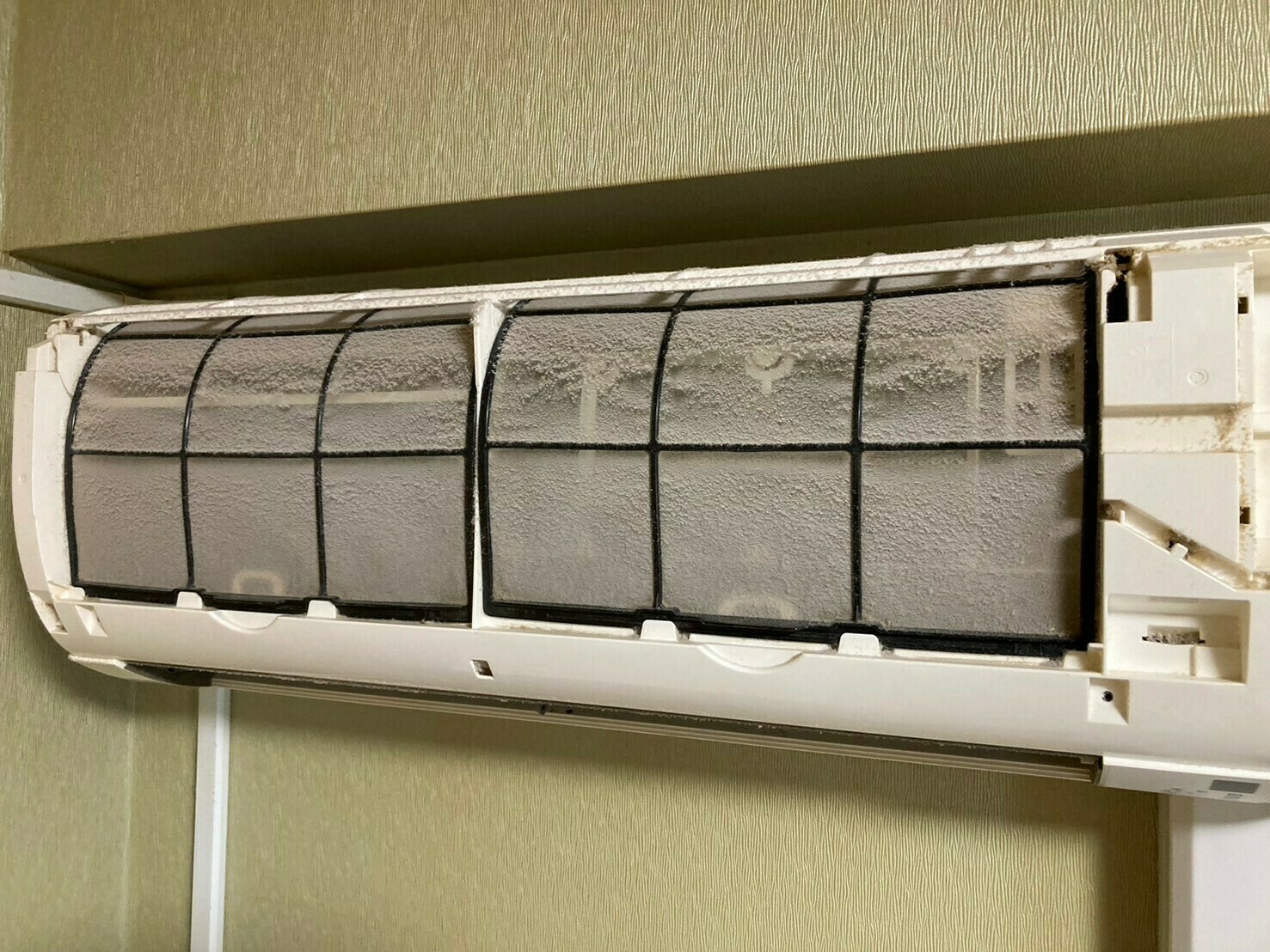 このままではエアコンをつけると埃もお部屋にまき散らすことになりますね😭