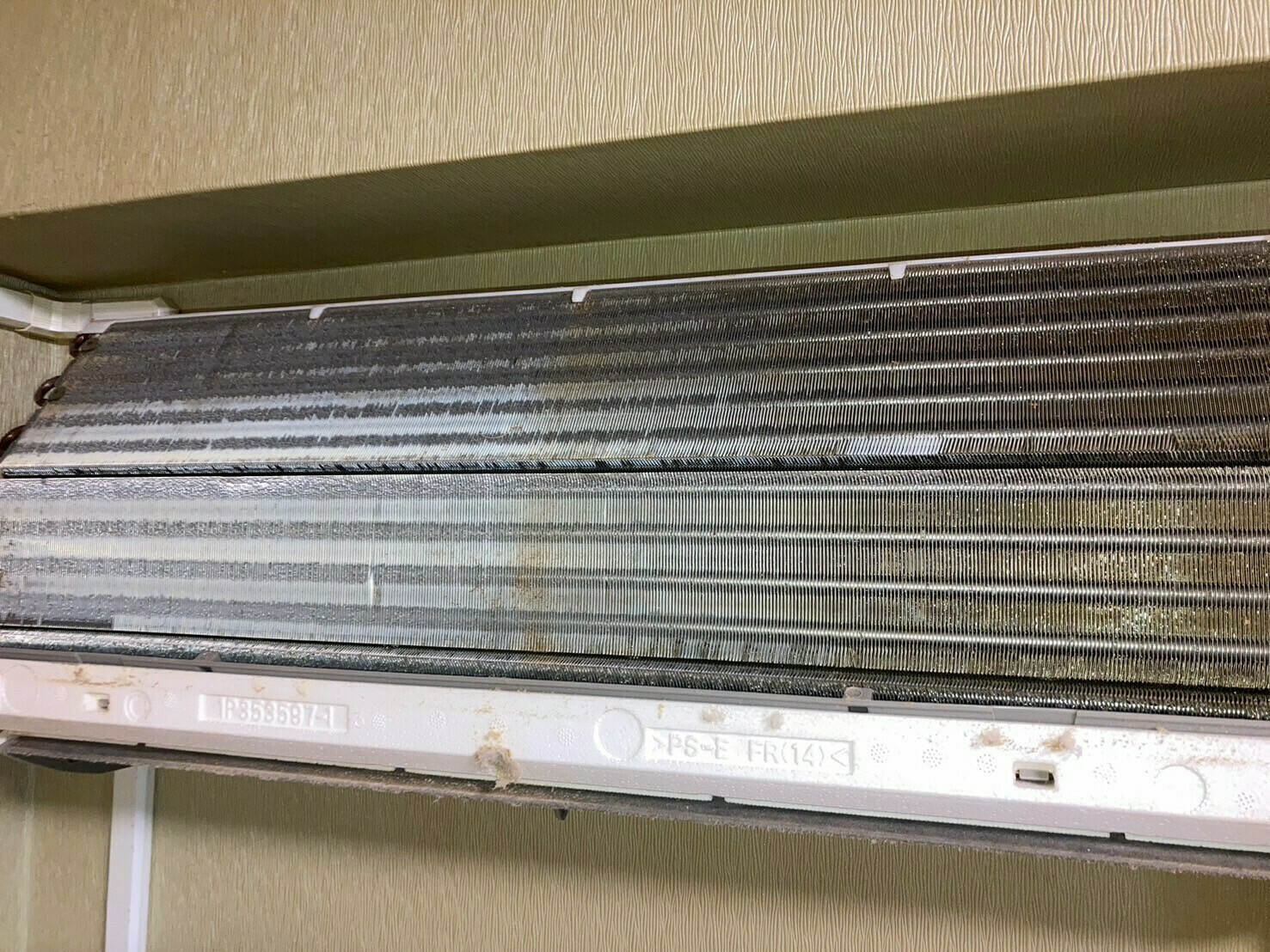こちらのエアコンも送風ファンも送風口も1台目と同じように埃・黒カビ汚れがついています💦