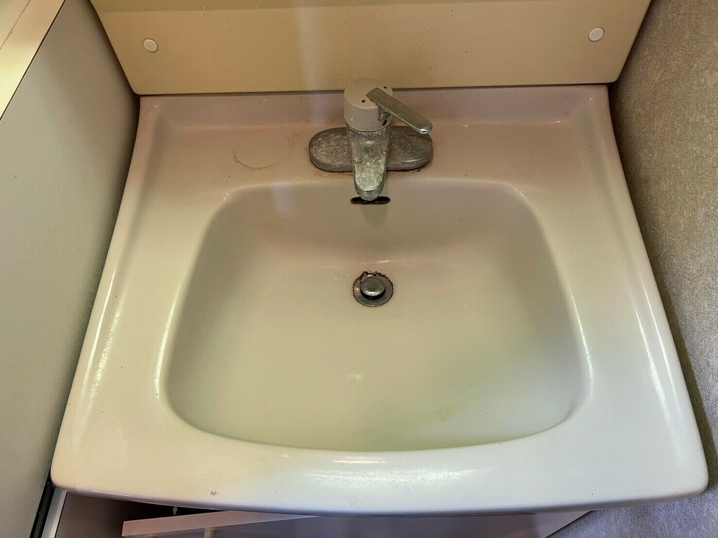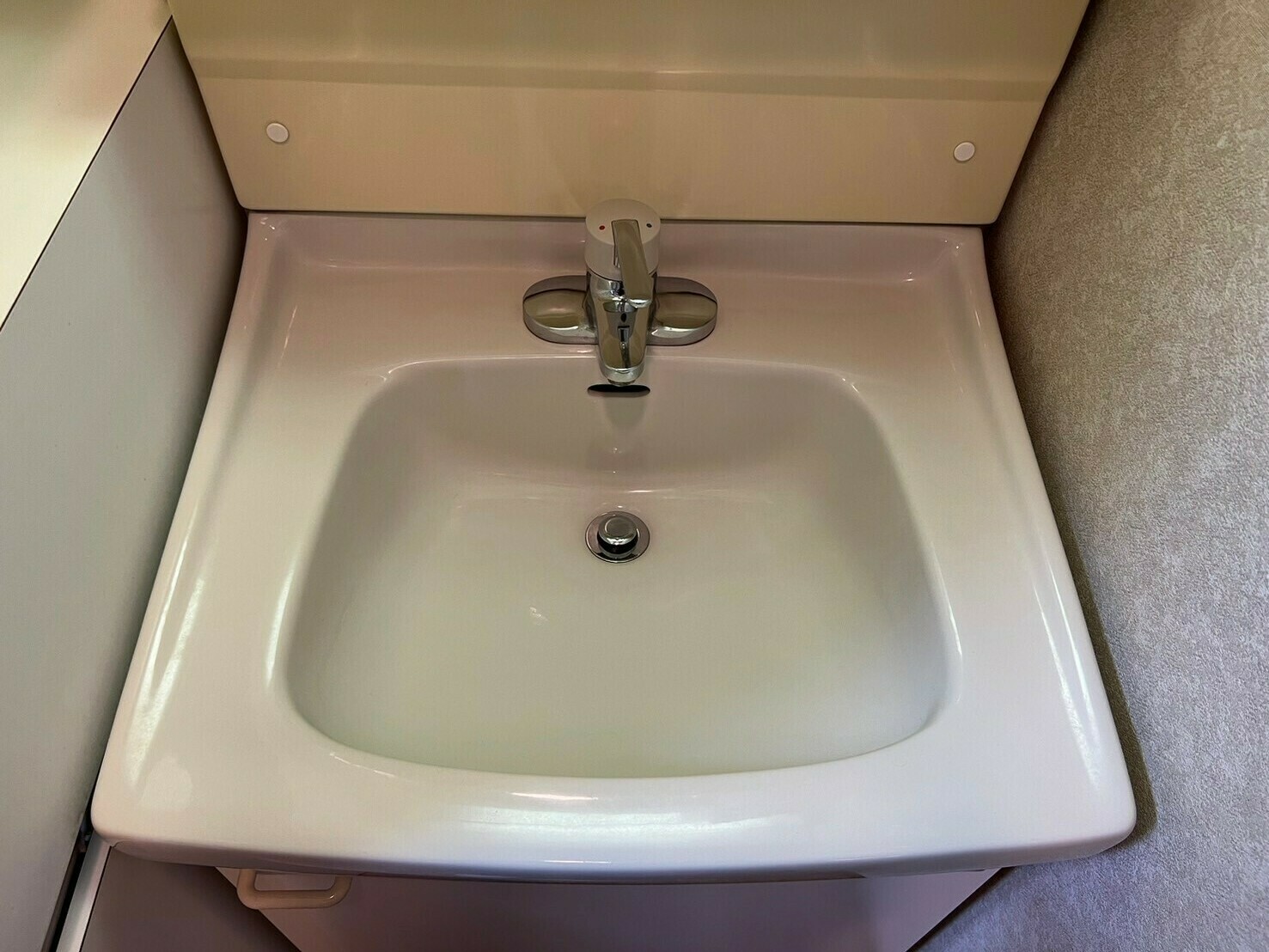 蛇口周りのウロコ汚れも、排水口付近の水垢汚れもなくなり、美しい洗面台になりました😄