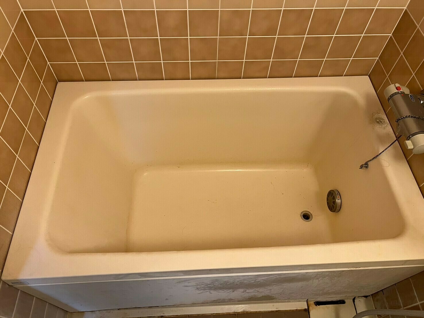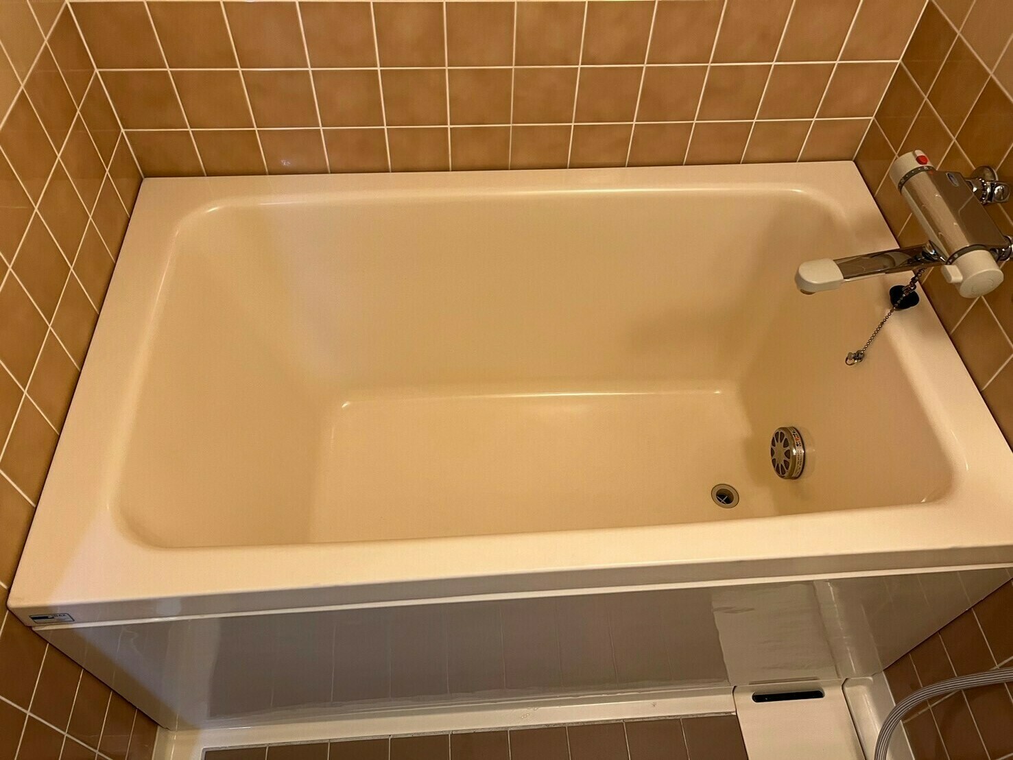 浴槽の淵にはものを置いていた跡が残っていたり、側面には石鹼かすや皮脂汚れが目立っています😨