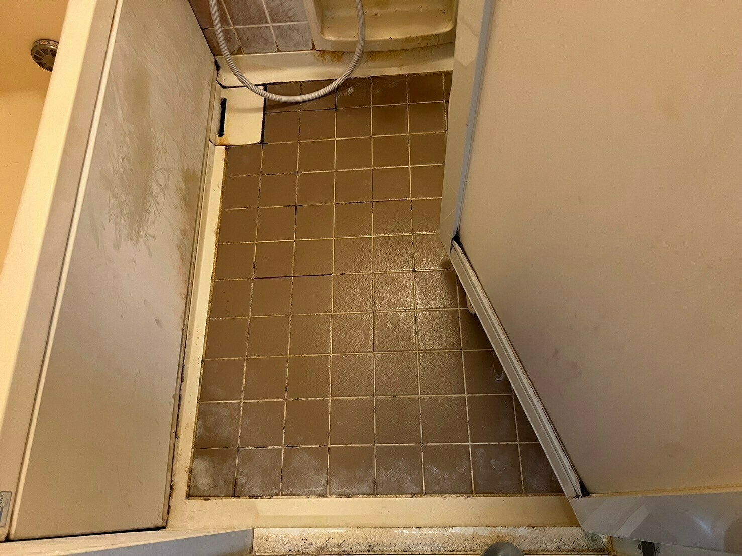床や壁には石鹼カス汚れによって白くなっている部分がありますね🤔