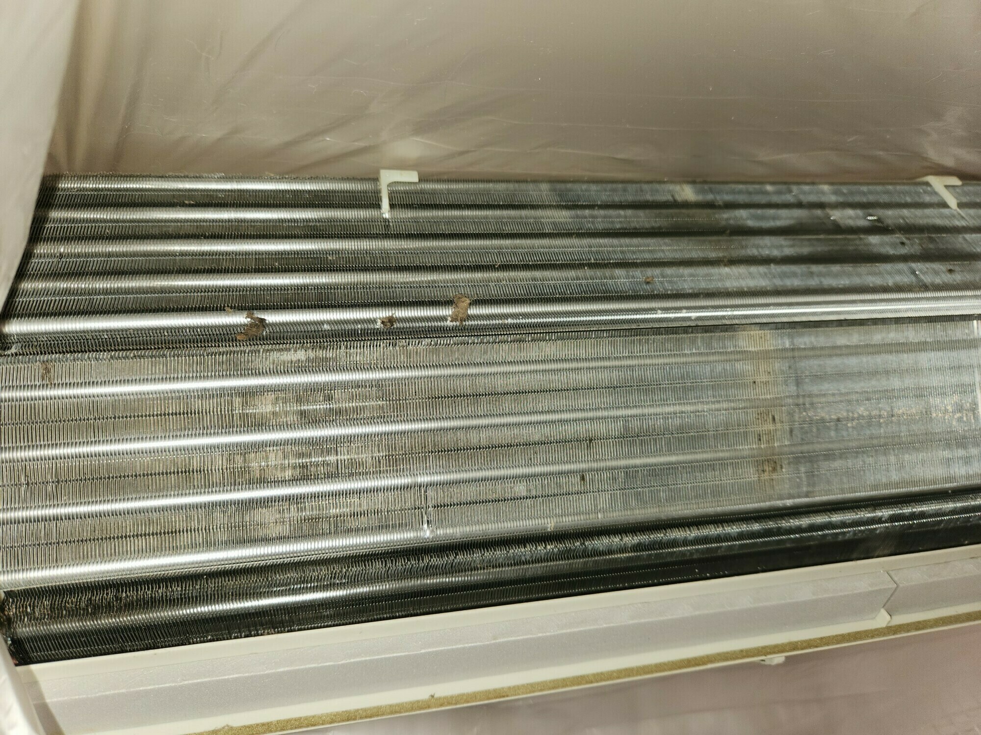 アルミフィンには埃が塊で埋まっていますね💦