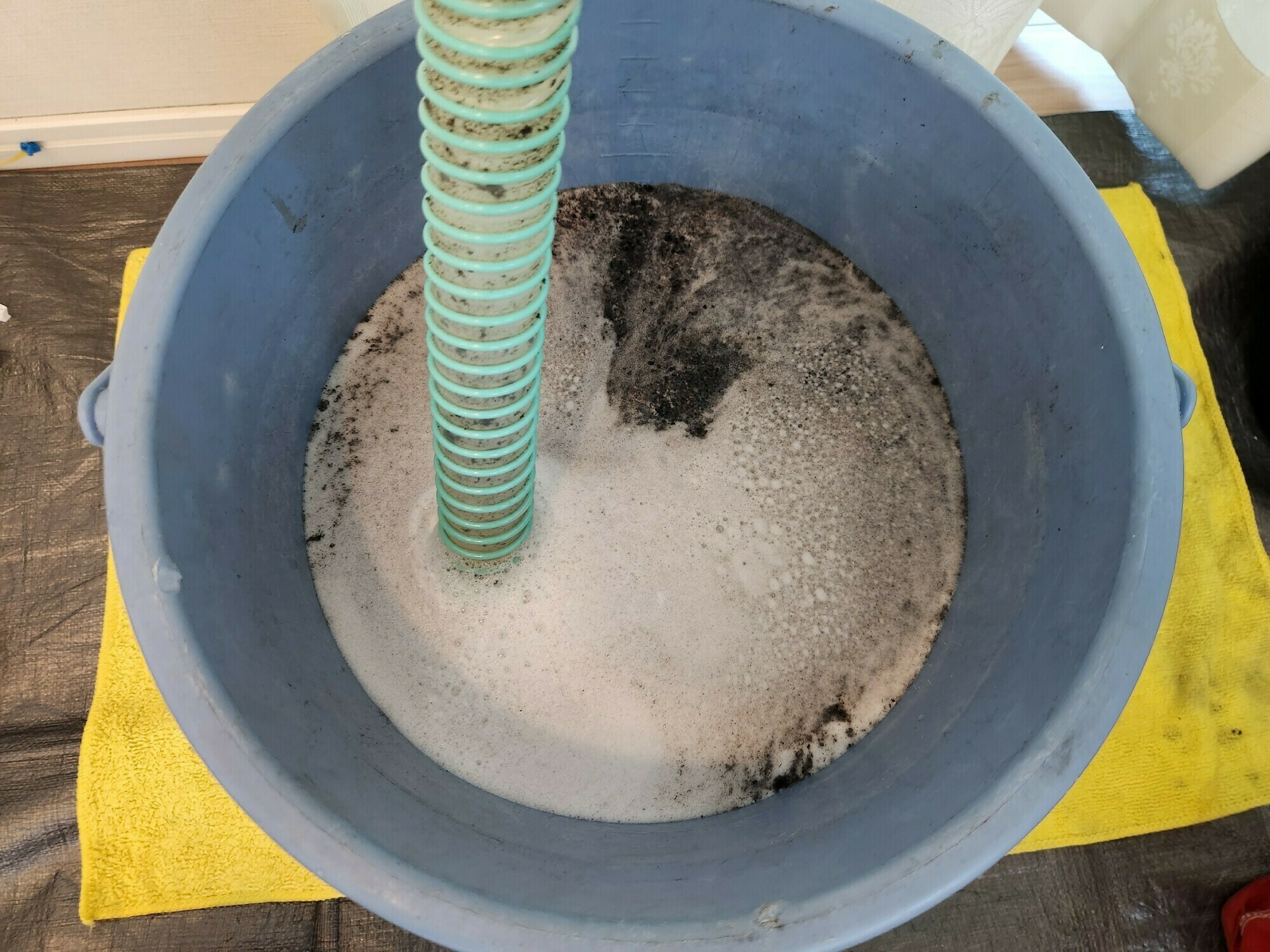 泡立って少し見えにくいですが、墨汁のような真っ黒の汚水が出ましたね!