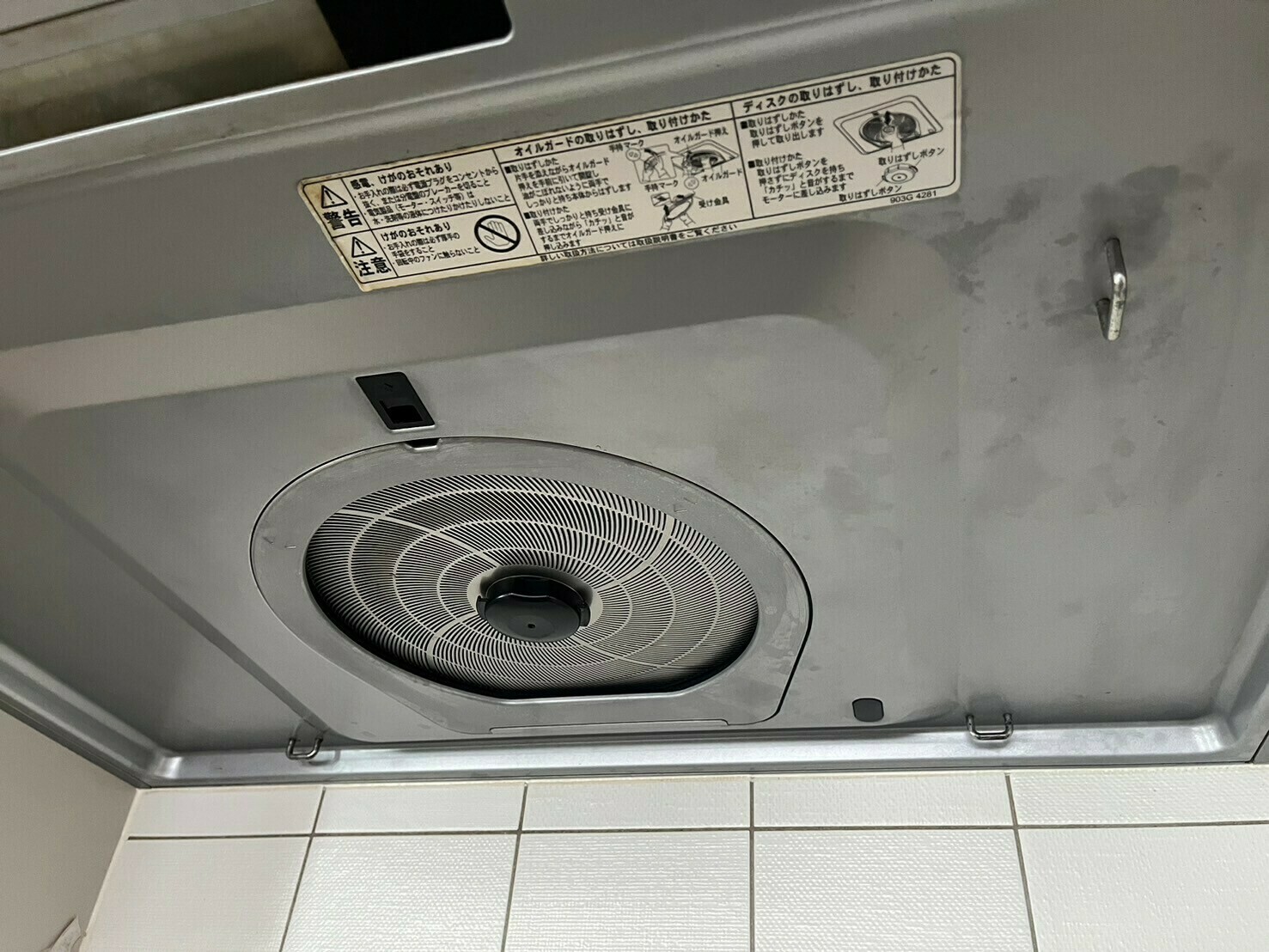 整流板を外すと、内面パネルには埃と油汚れがついていますね💦